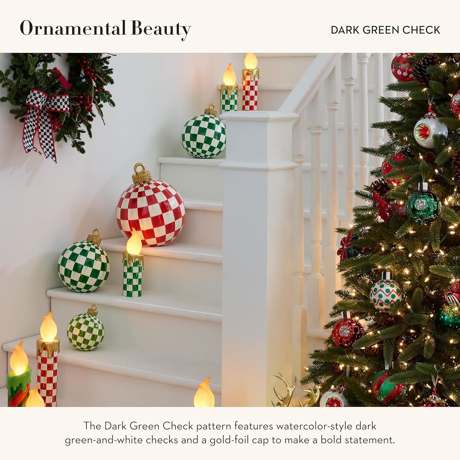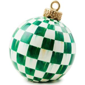 MACKENZIE-CHILDS Resin Tabletop Ornament, Christmas-Tree Ornament-Ball Centerpiece, 8-Inch Diameter, Dark-Green Check(Dark-green Check)