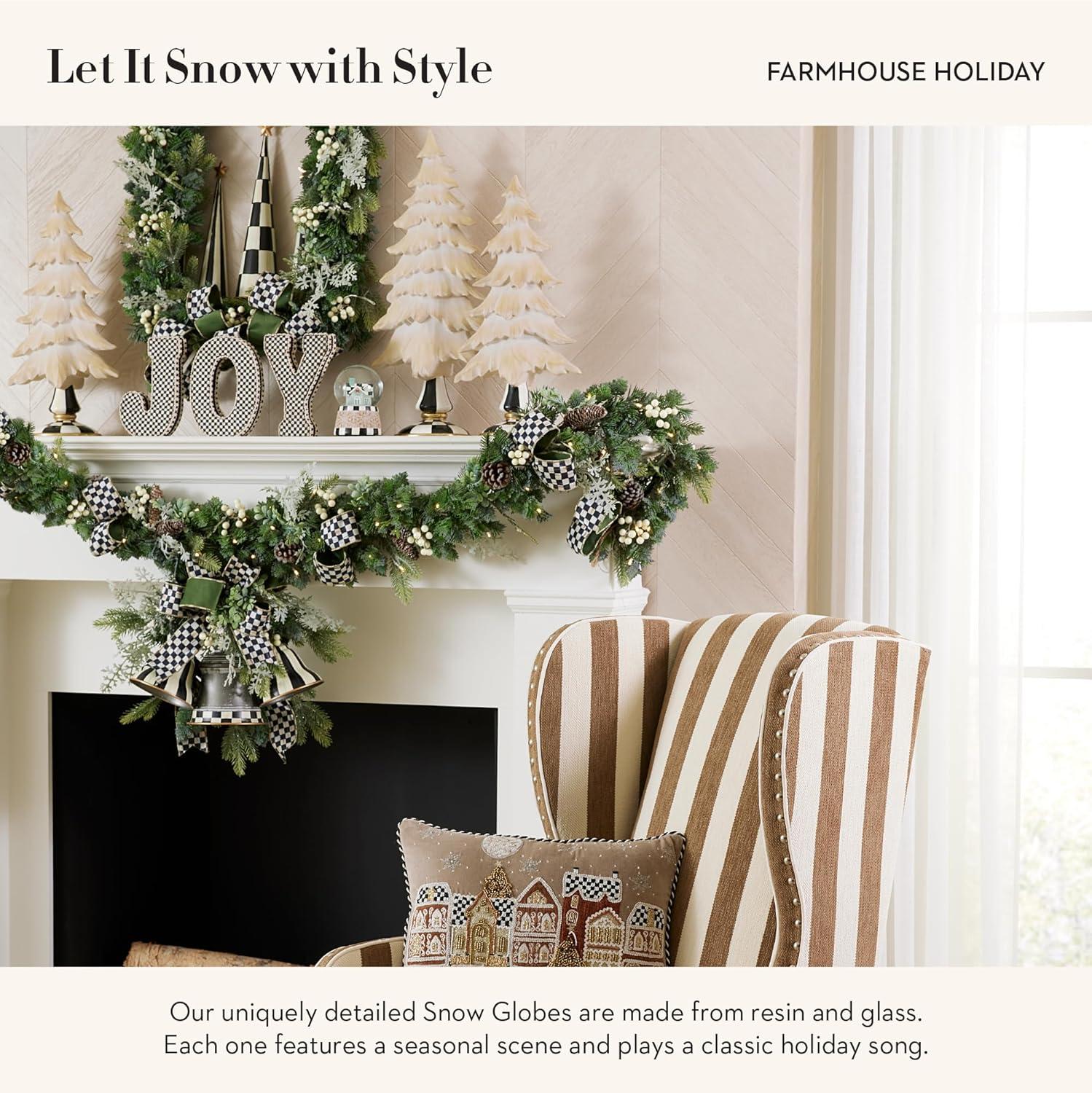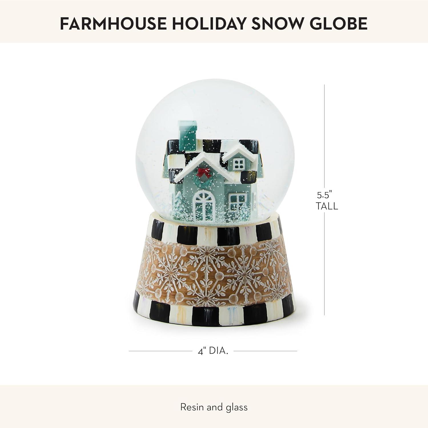 MACKENZIE-CHILDS Snow Globe, Christmas Decoration for Living Room, Holiday Decor, Courtly Teapot(Farmhouse Holiday)
