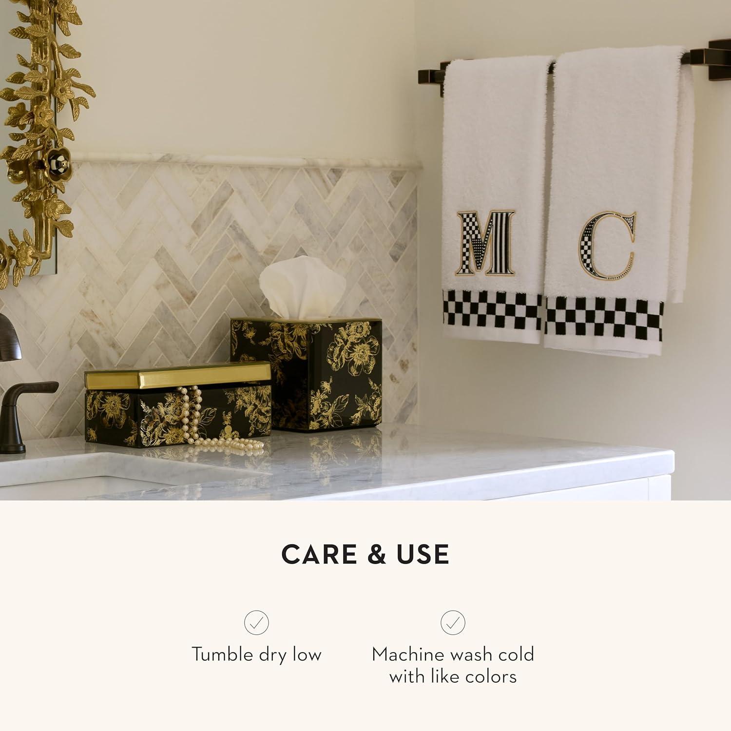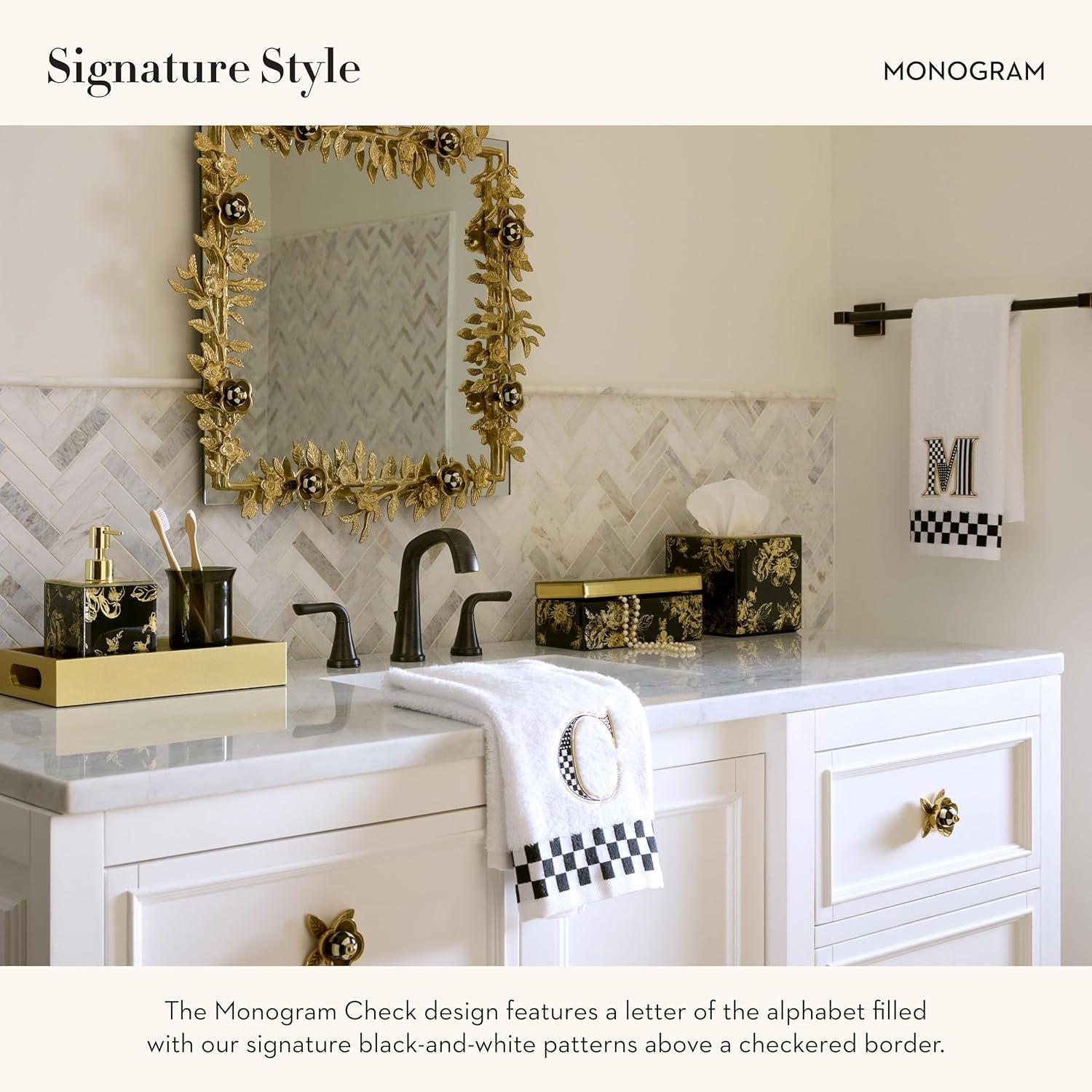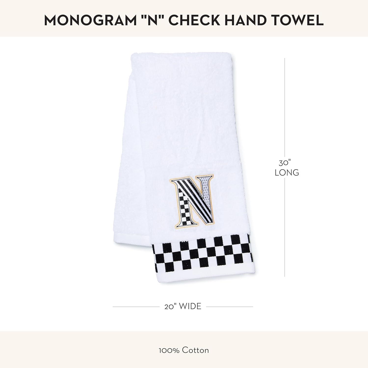 MACKENZIE-CHILDS Monogram Cotton Hand Towel, Cute Black-and-White Decorative Monogrammed Hand Towel for Bathroom or Kitchen, J(N)