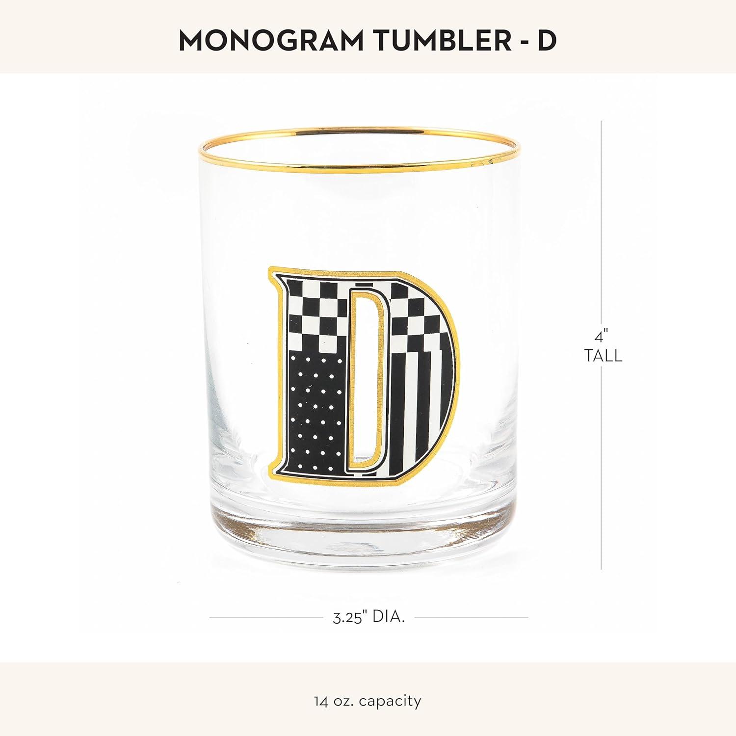 MACKENZIE-CHILDS Monogram Tumbler, Glass Tumbler with Letter, 14 Ounces, J(D)