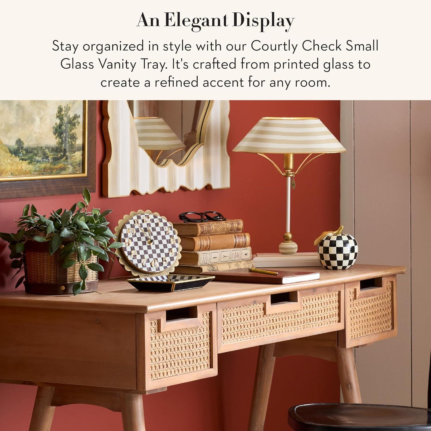 MACKENZIE-CHILDS Vanity Mirror, Double-Sided Makeup Mirror with 5X Magnification on One Side, Black-and-White Courtly Check