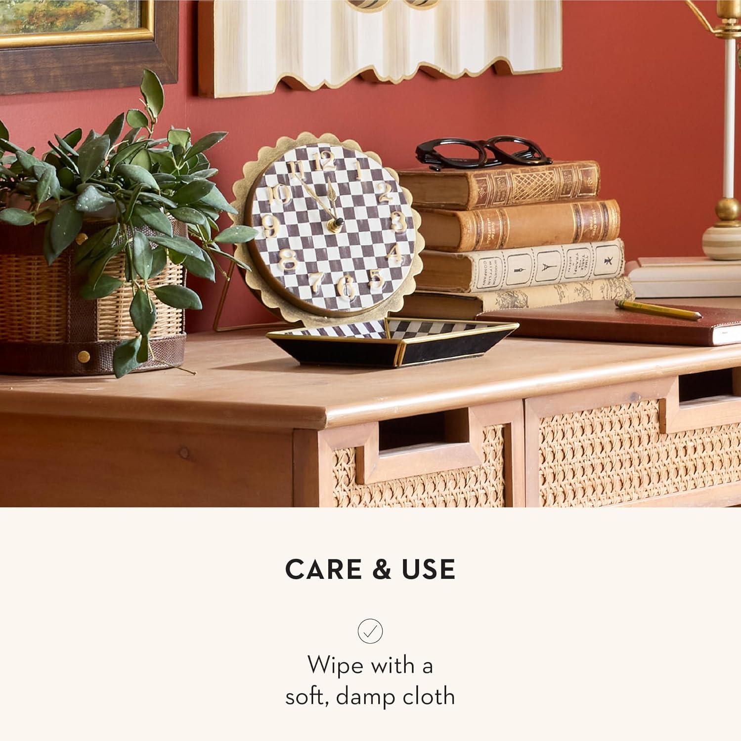 MACKENZIE-CHILDS Wall Clock, Decorative Clock for Kitchen and Living Room, Blue-and-White Royal Check(Emerald Check)
