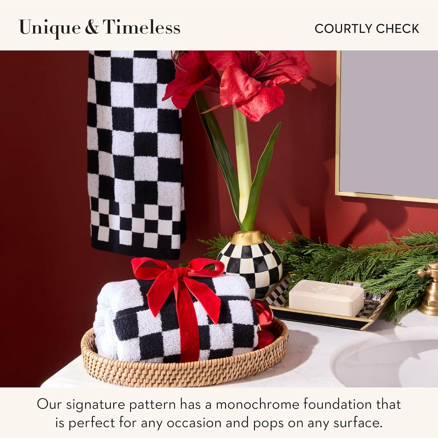 MACKENZIE-CHILDS Bath Towel, Cute Decorative Bathroom Towel, Blue-and-White Royal Check(Black Check)
