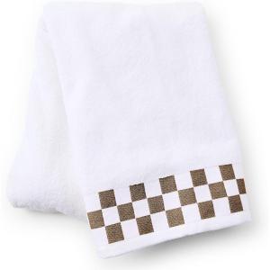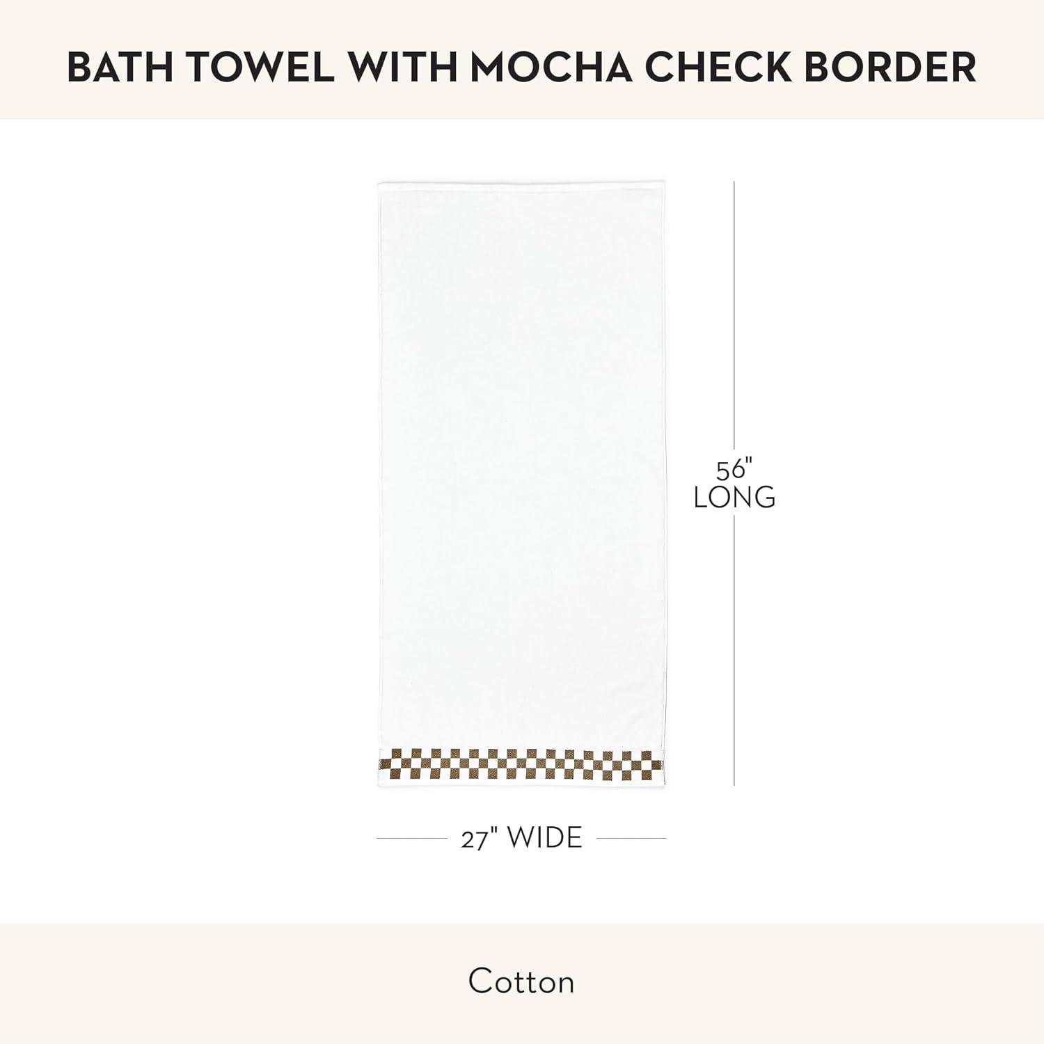 MACKENZIE-CHILDS Cotton Bath Towel, Cute Decorative Bathroom Towel, Brown-and-White Mocha Check Border(Mocha Check Border)