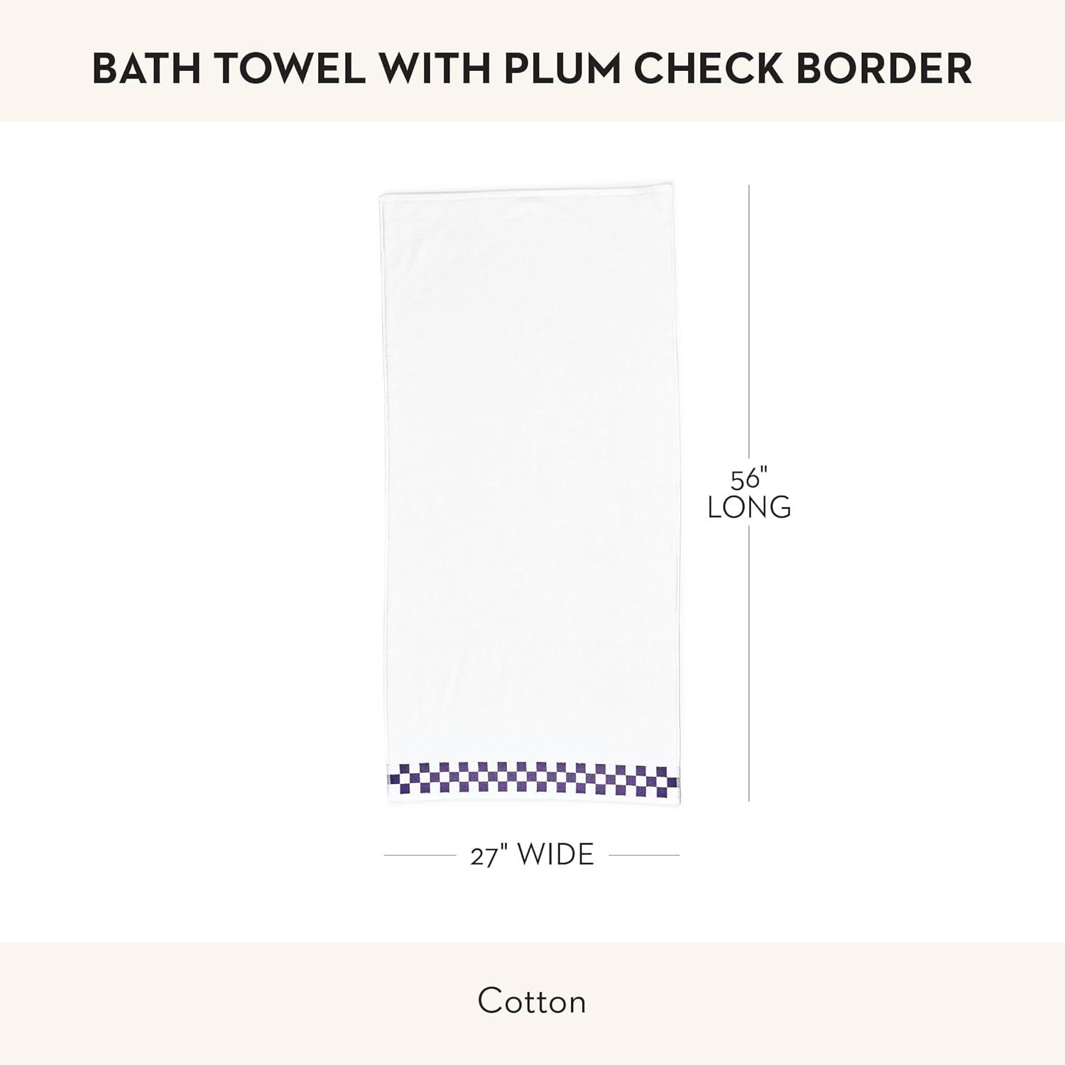 MACKENZIE-CHILDS Cotton Bath Towel, Cute Decorative Bathroom Towel, Brown-and-White Mocha Check Border(Plum Check Border)