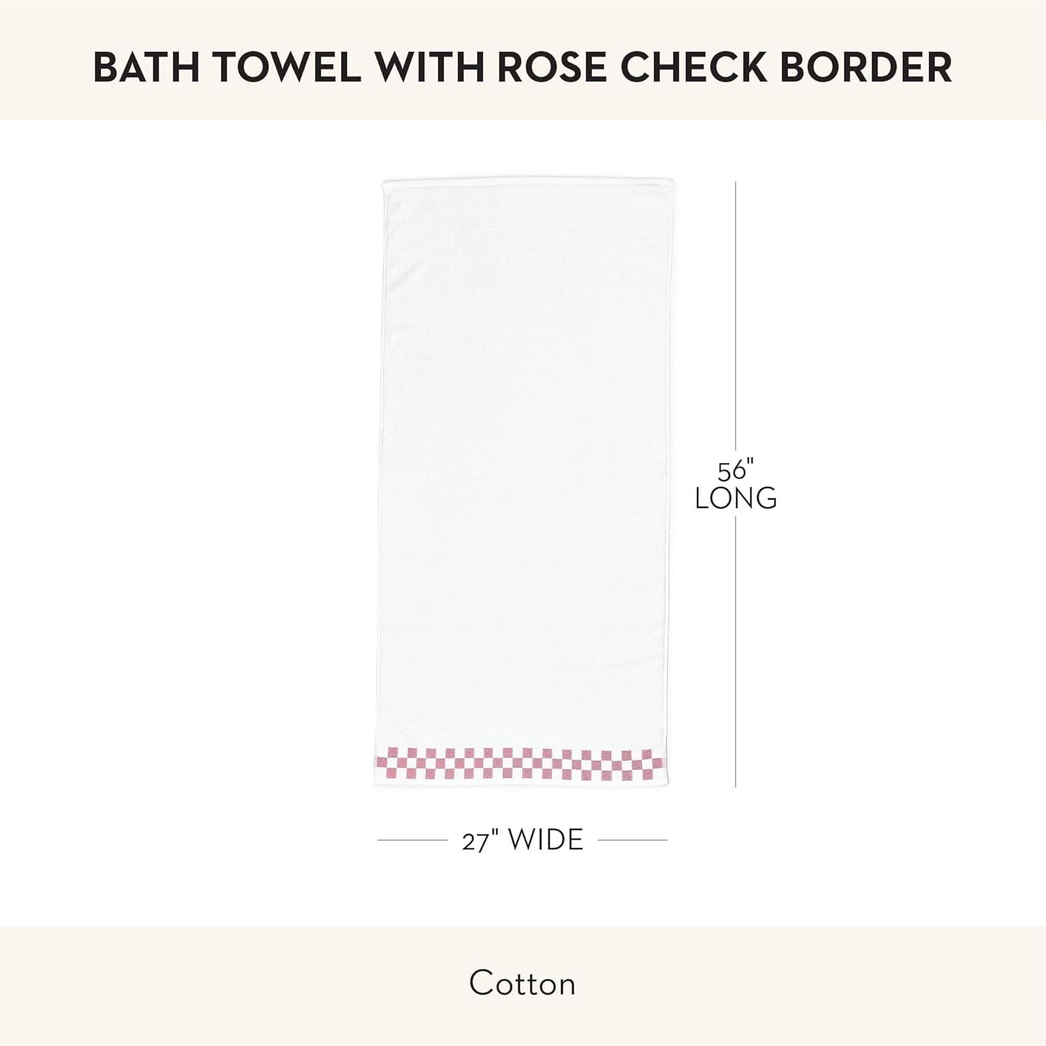 MACKENZIE-CHILDS Cotton Bath Towel, Cute Decorative Bathroom Towel, Brown-and-White Mocha Check Border(Rose Check Border)