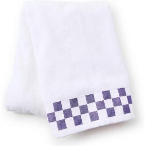 MACKENZIE-CHILDS Cotton Bath Towel, Cute Decorative Bathroom Towel, Brown-and-White Mocha Check Border(Navy Check)