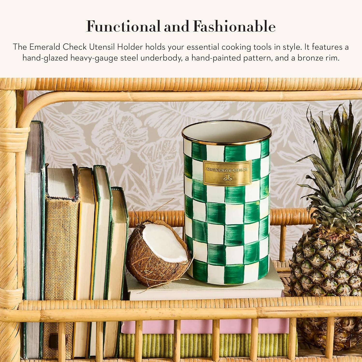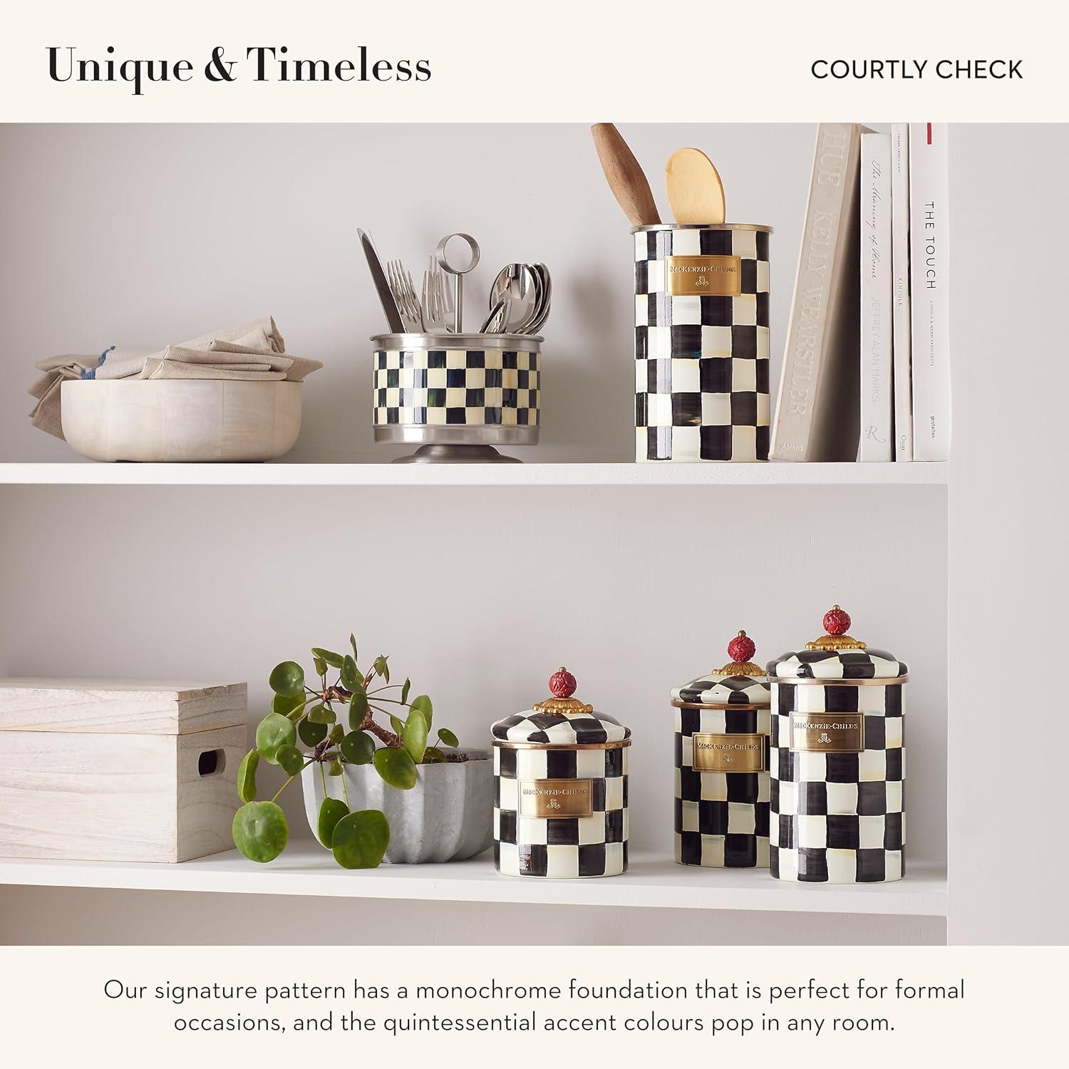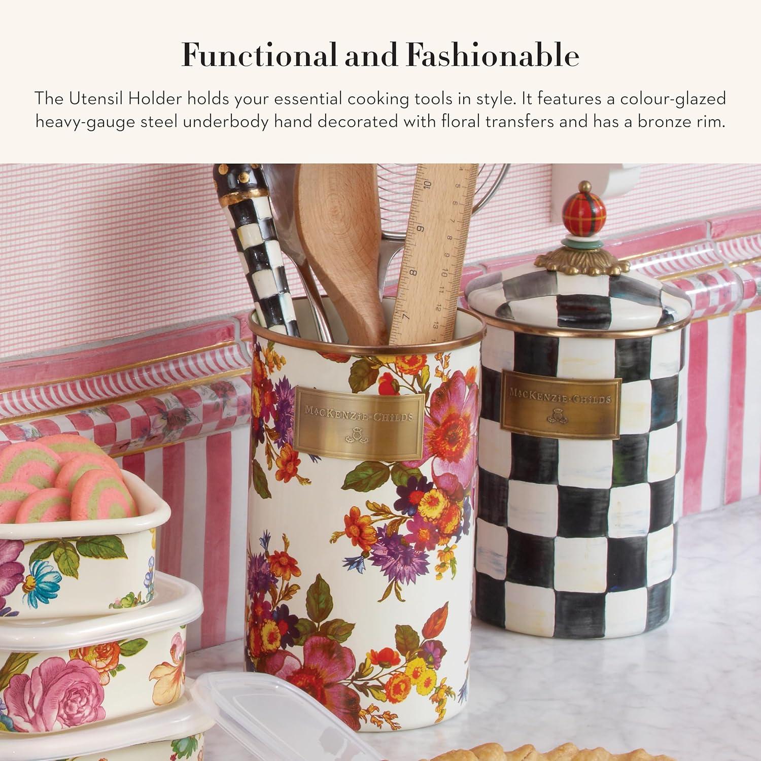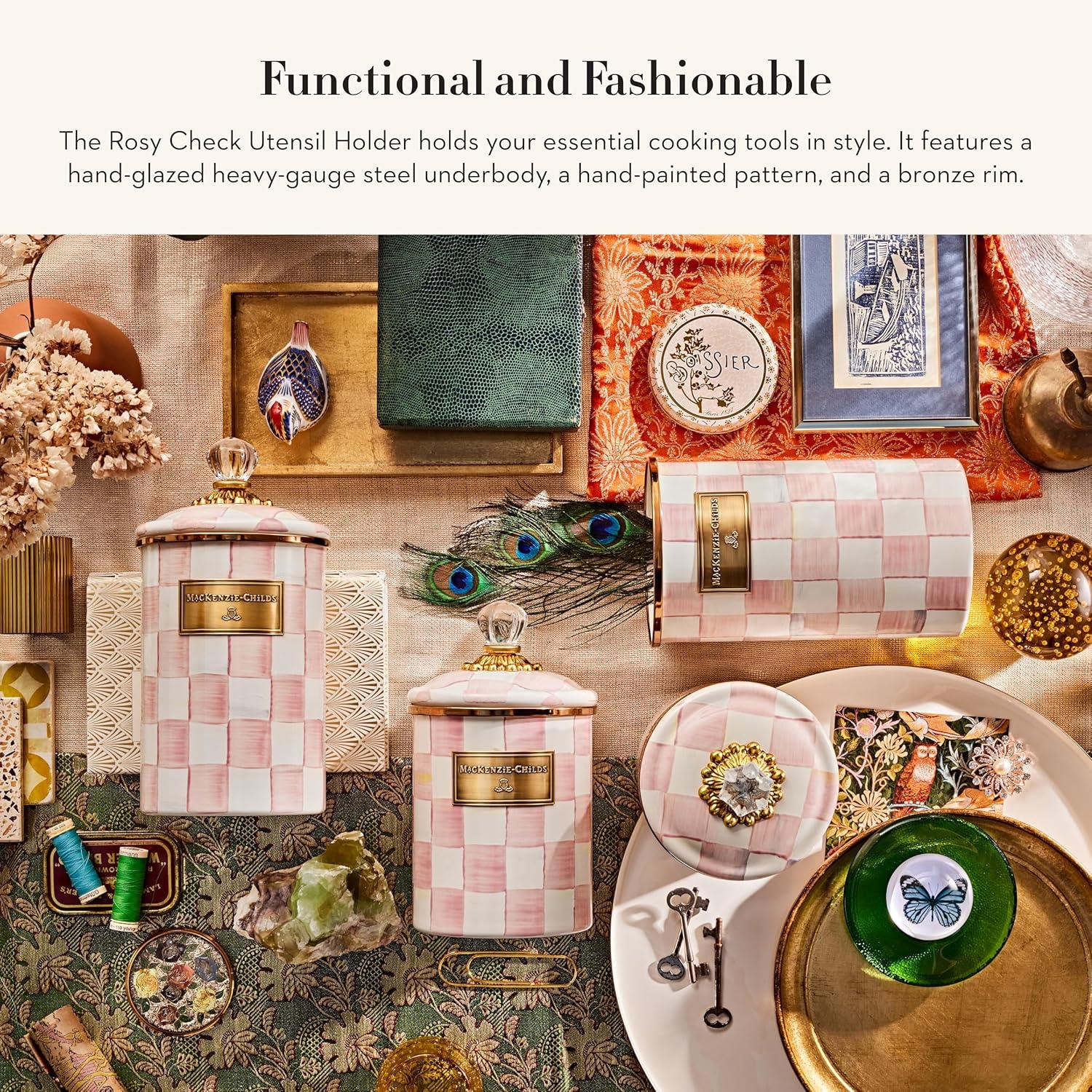 Don't miss out on our limited-time offer: get a free {accessory} with your purchase of MACKENZIE-CHILDS Enamel Utensil Holder, Kitchen Utensil Holder for Countertop, Storage Caddy, Black-and-White Courtly Check(Rosy Check).