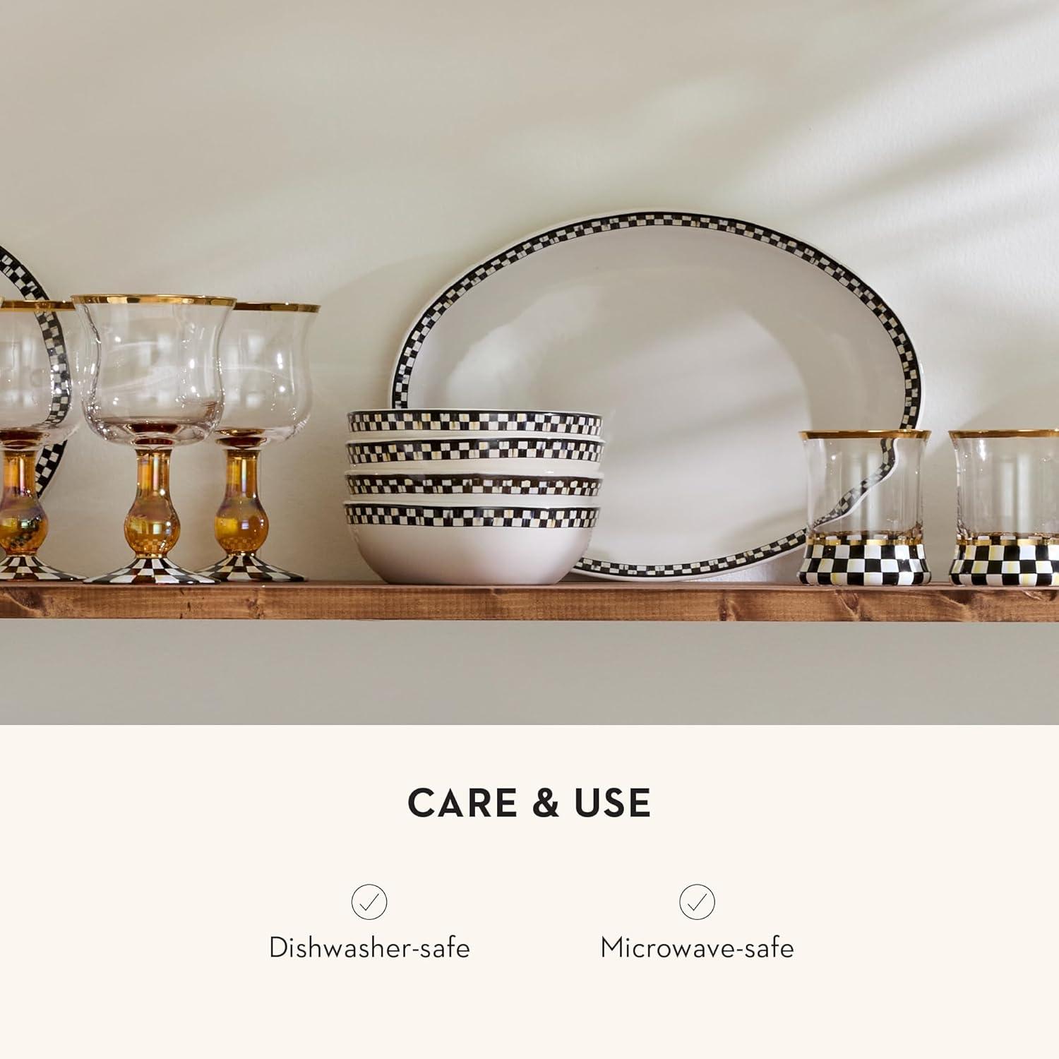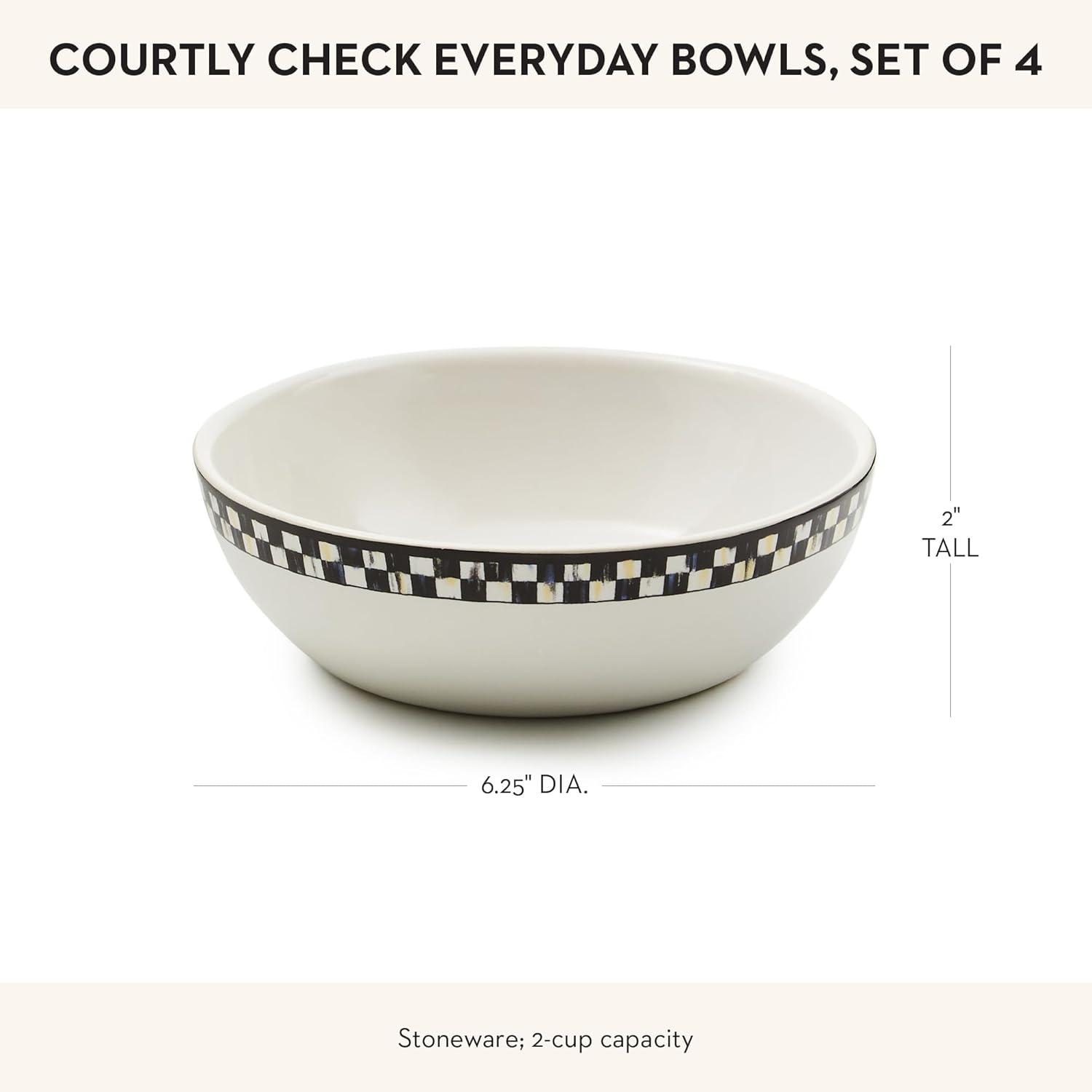 MACKENZIE-CHILDS Everyday Bowl, Serving Bowl for Entertaining, Set of 4, Black-and-White Courtly Check