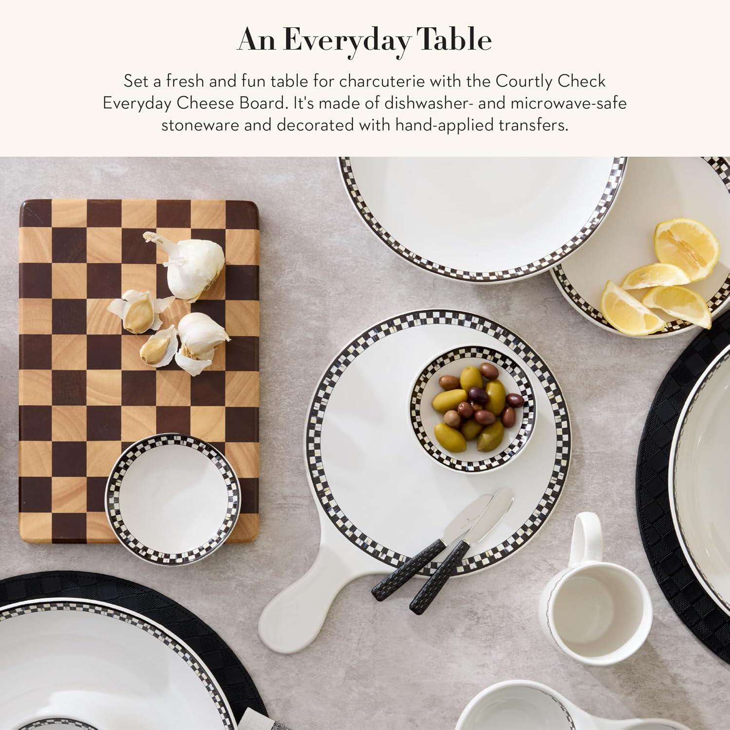 MACKENZIE-CHILDS Everyday Cheese Board, Dishwasher-Safe Round Charcuterie Board, Black-and-White Courtly Check