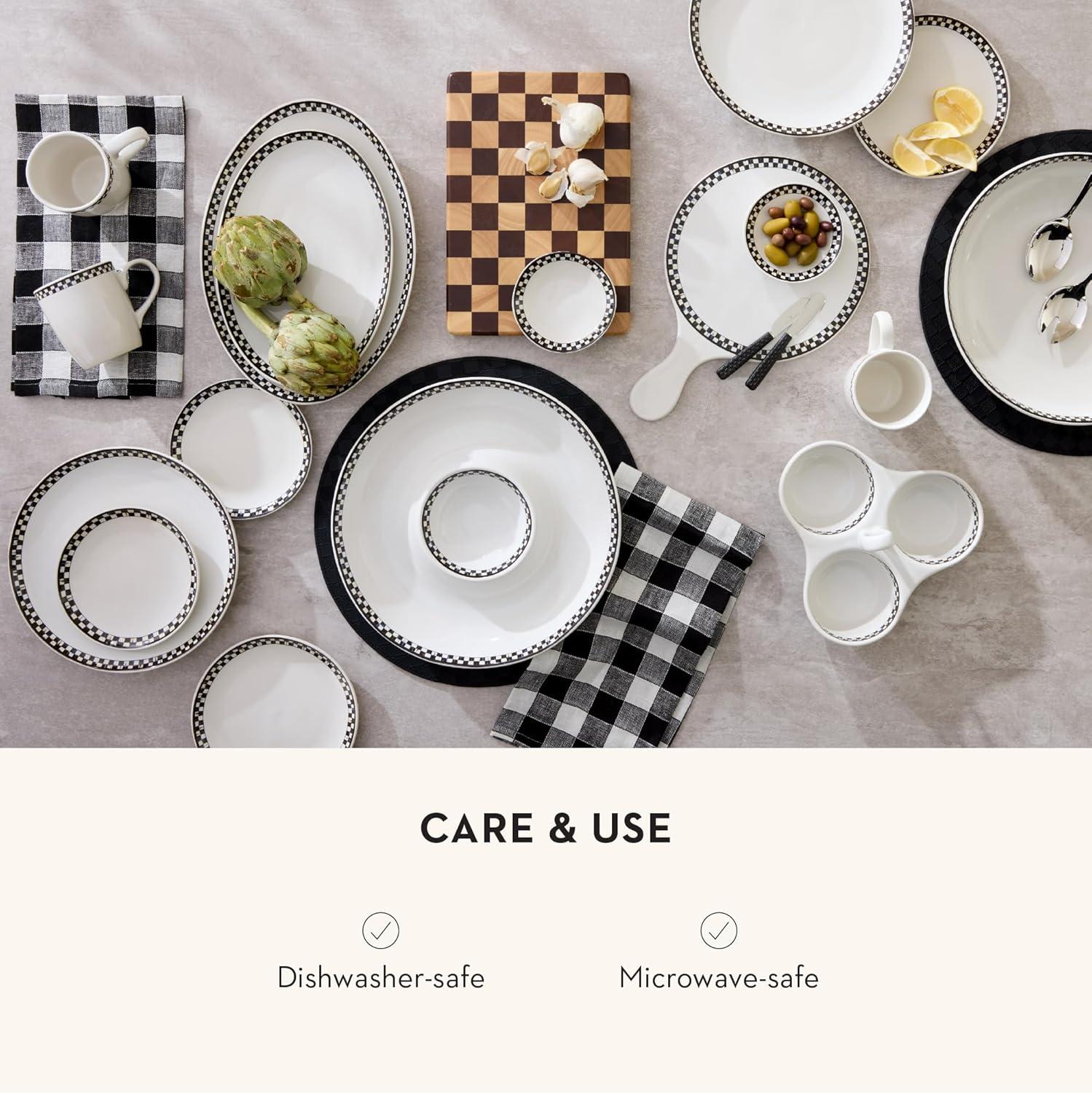 MACKENZIE-CHILDS Set of 2 Everyday Oval Platters, Dishwasher-Safe and Microwave-Safe, Black-and-White Courtly Check
