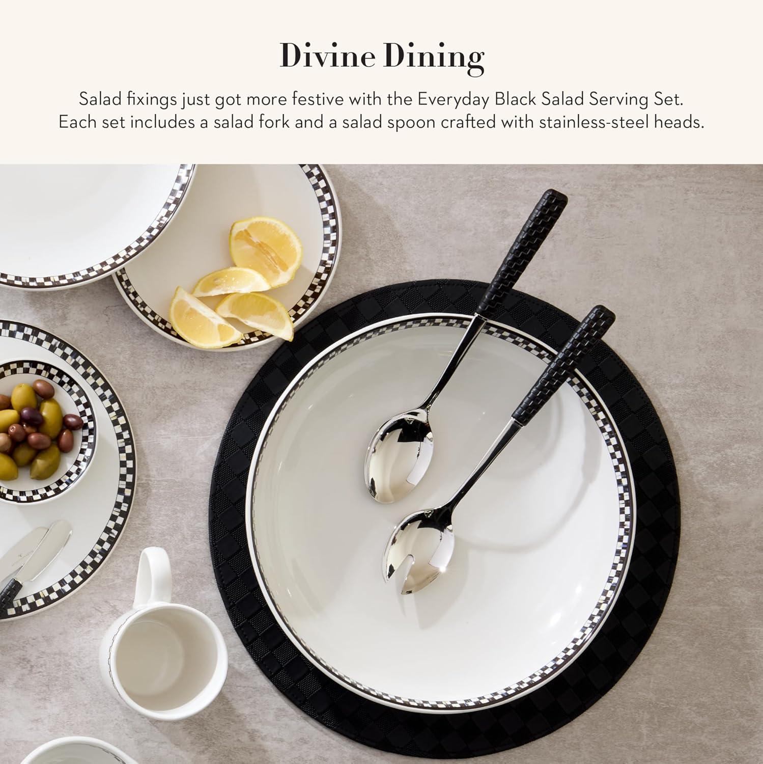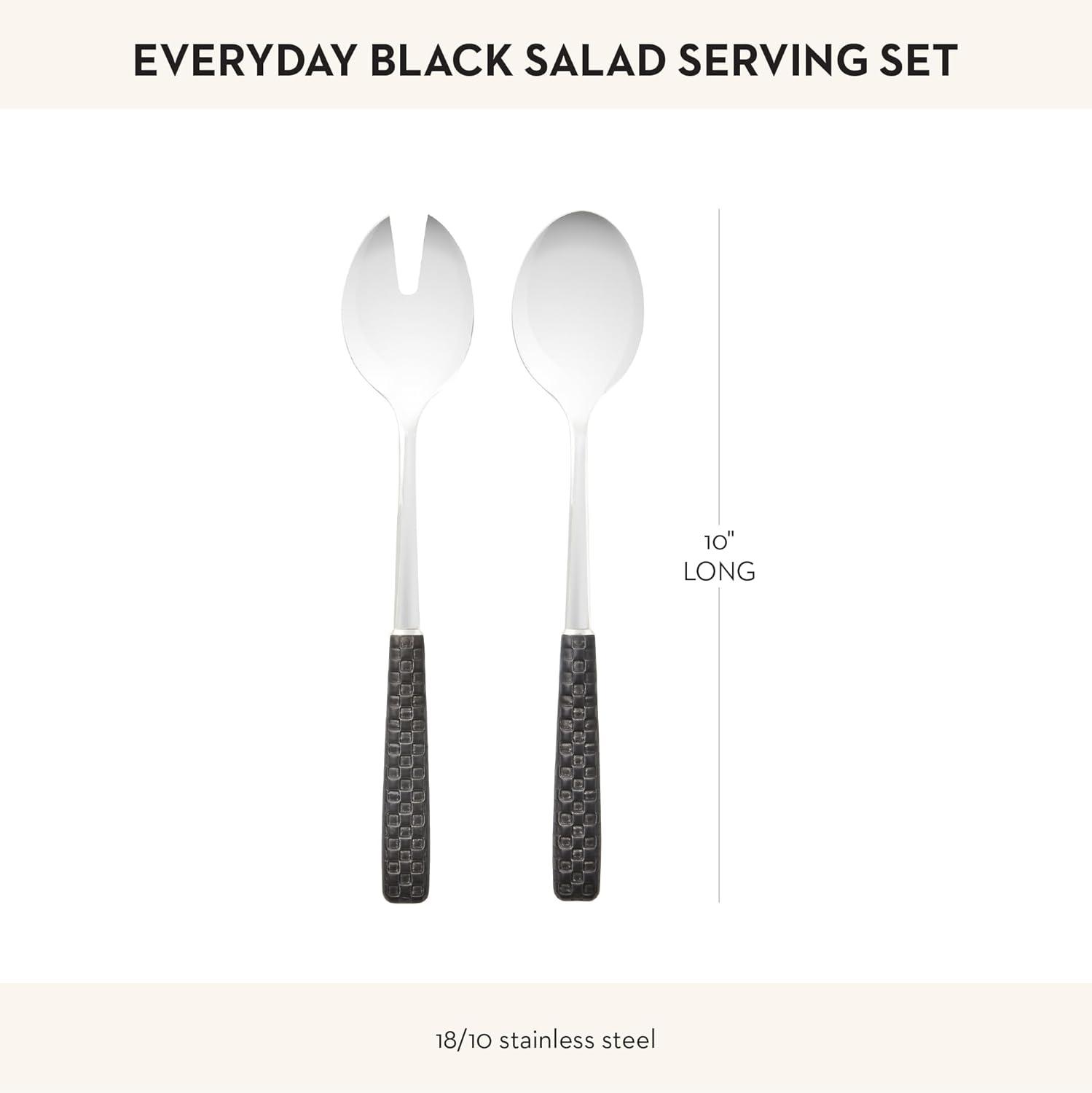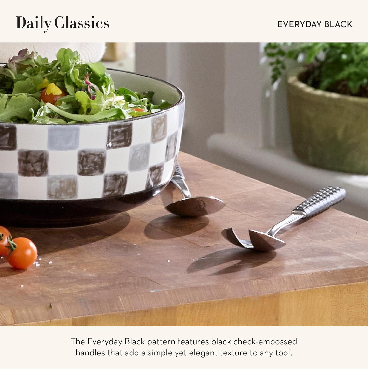 MACKENZIE-CHILDS Everyday Salad Serving Set, Stainless-Steel Salad Servers, Leather(Black)