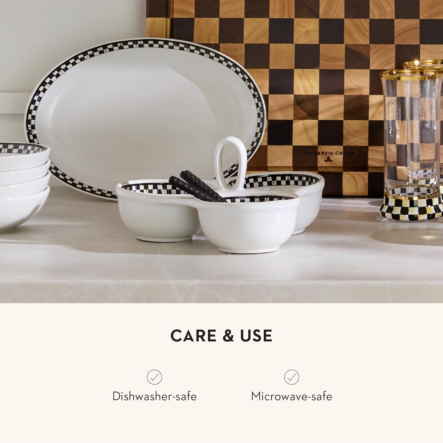MACKENZIE-CHILDS Everyday Trio, Stoneware Condiment Server, Black-and-White Courtly Check
