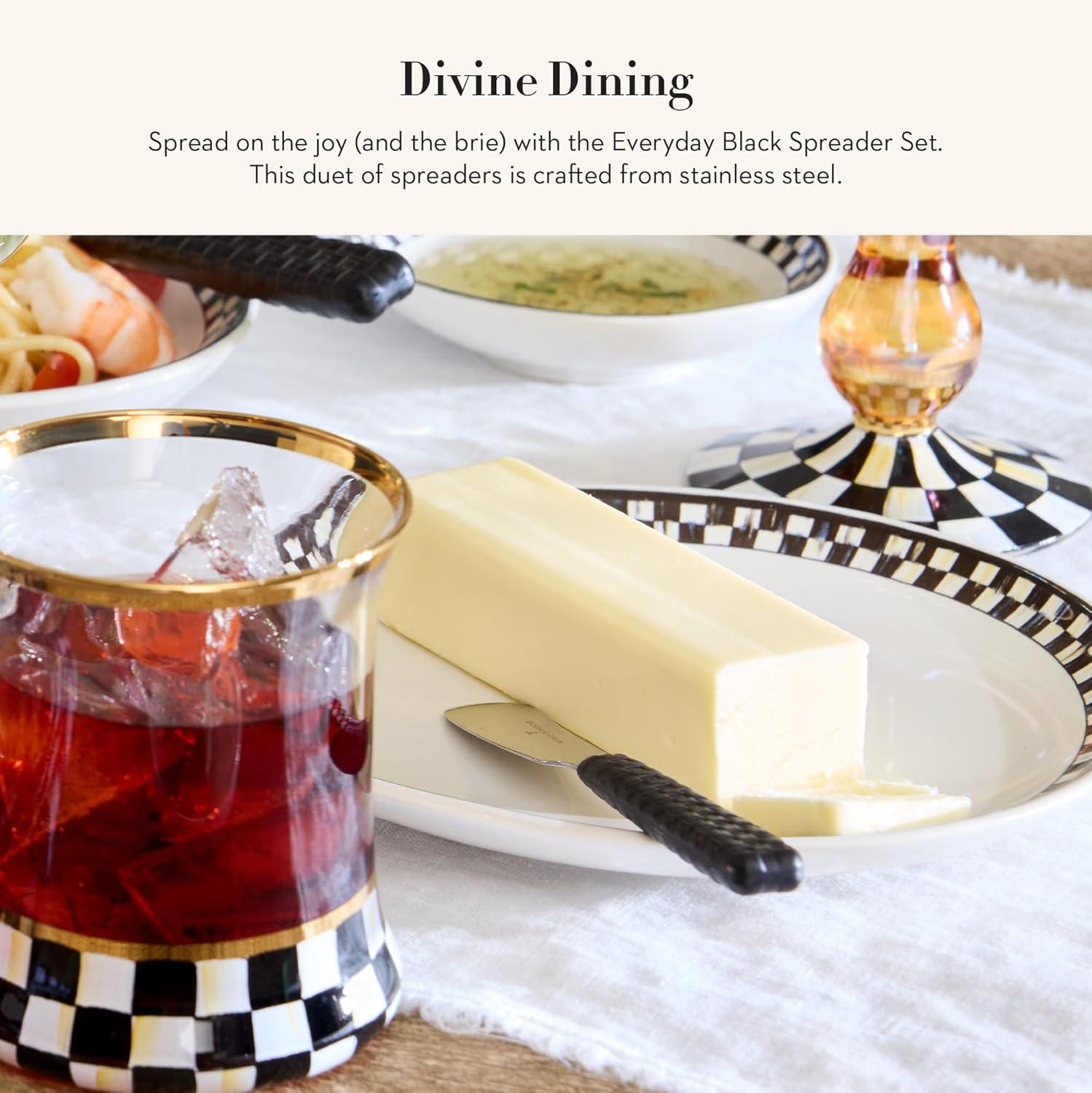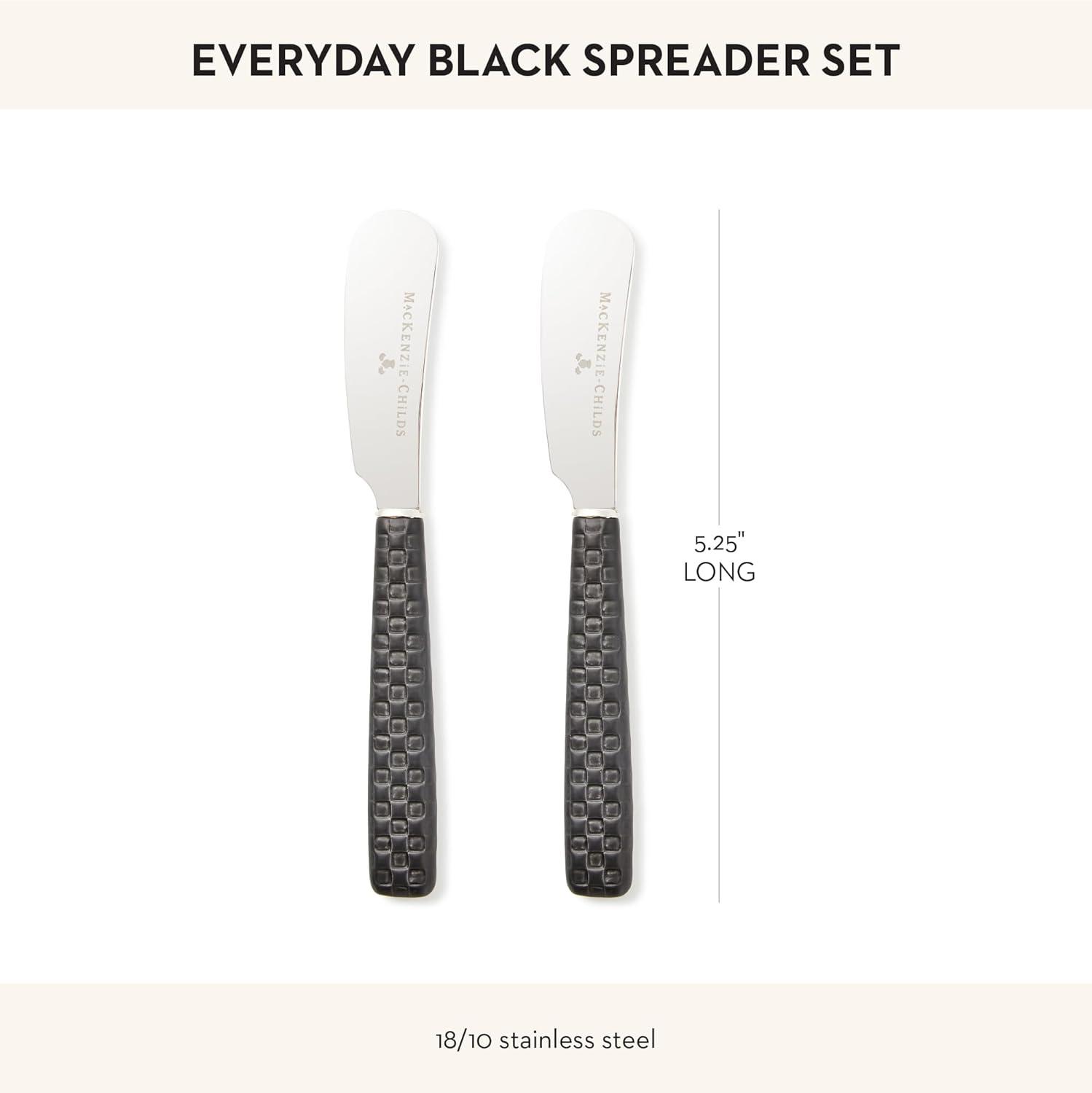 MACKENZIE-CHILDS Set of 2 Everyday Spreaders, Stainless-Steel Butter Knife Set, Leather(Black)