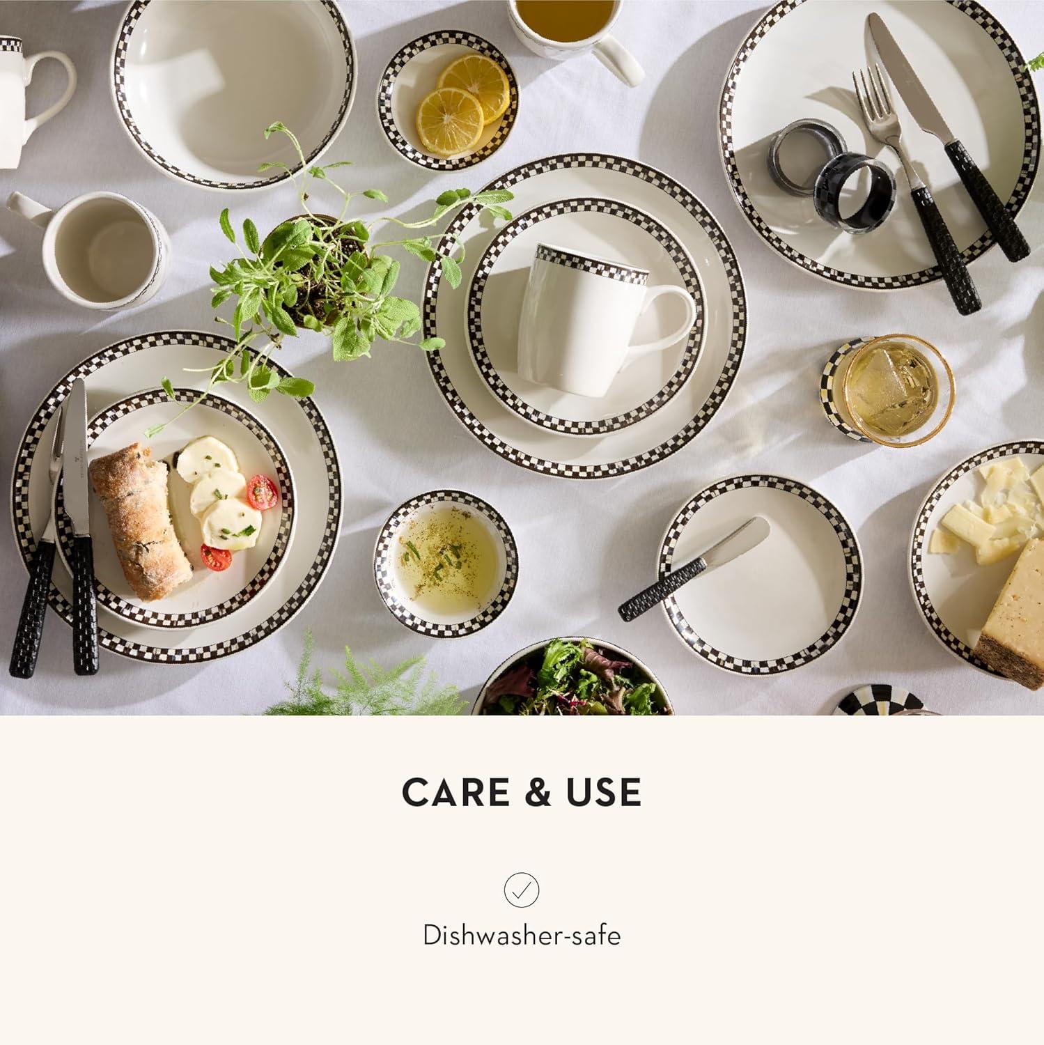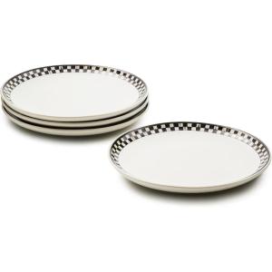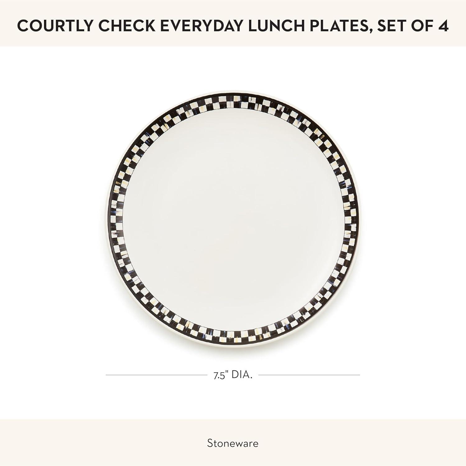 MACKENZIE-CHILDS Set of 4 Everyday Lunch Plates, Microwave-Safe and Dishwasher-Safe Stoneware Plates, Black-and-White Courtly Check
