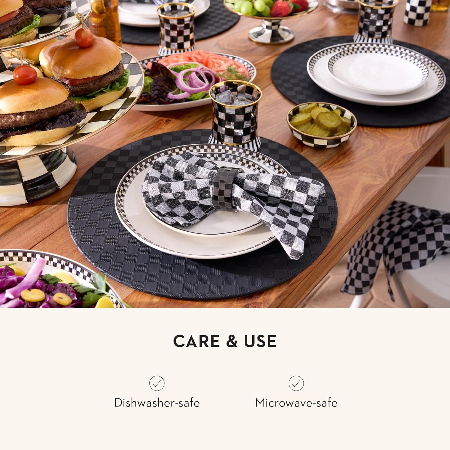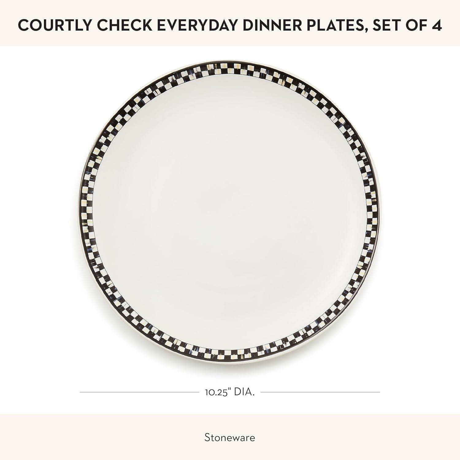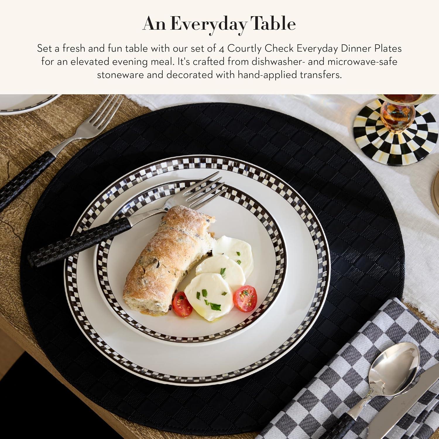 MACKENZIE-CHILDS Set of 4 Everyday Dinner Plates, Dishwasher- and Microwave-Safe, 10 Inches, Black-and-White Courtly Check