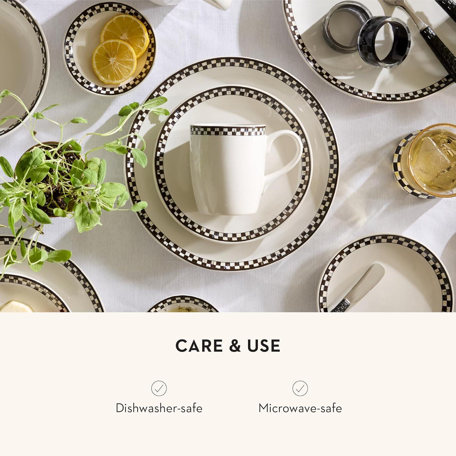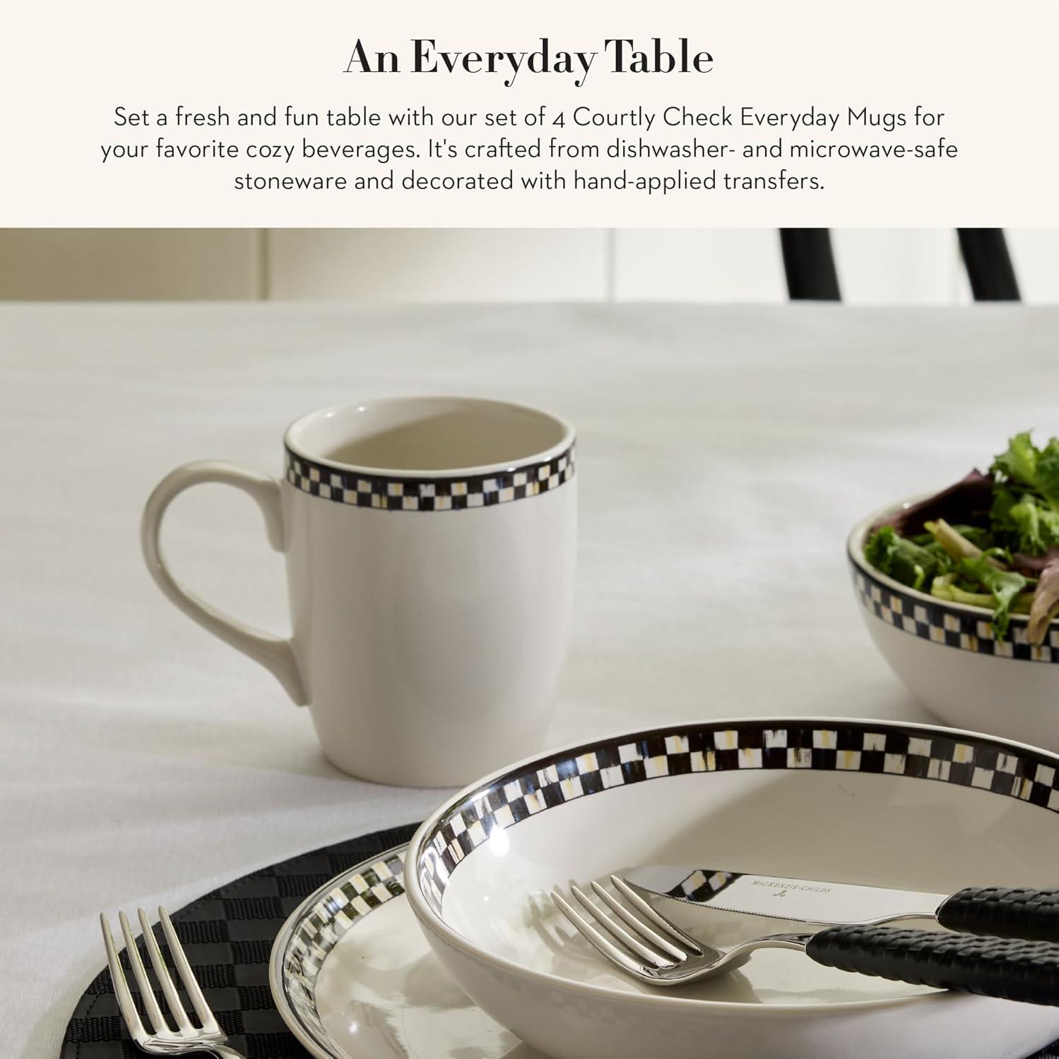 MACKENZIE-CHILDS Set of 4 Everyday Mugs, Dishwasher-Safe and Microwave-Safe, 14-Ounce Capacity, Black-and-White Courtly Check