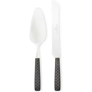 MACKENZIE-CHILDS Everyday Cake-Serving Set, Dishwasher-Safe Cake Spatula and Knife, Leather(Black)
