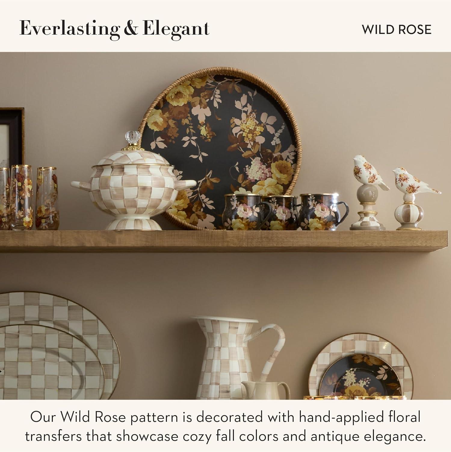 MACKENZIE-CHILDS Bird Topiaries, Decorative Bird Decor for Living Room or Bedroom Table Decor, Set of 2, Wildflowers(Brown Wild Rose)