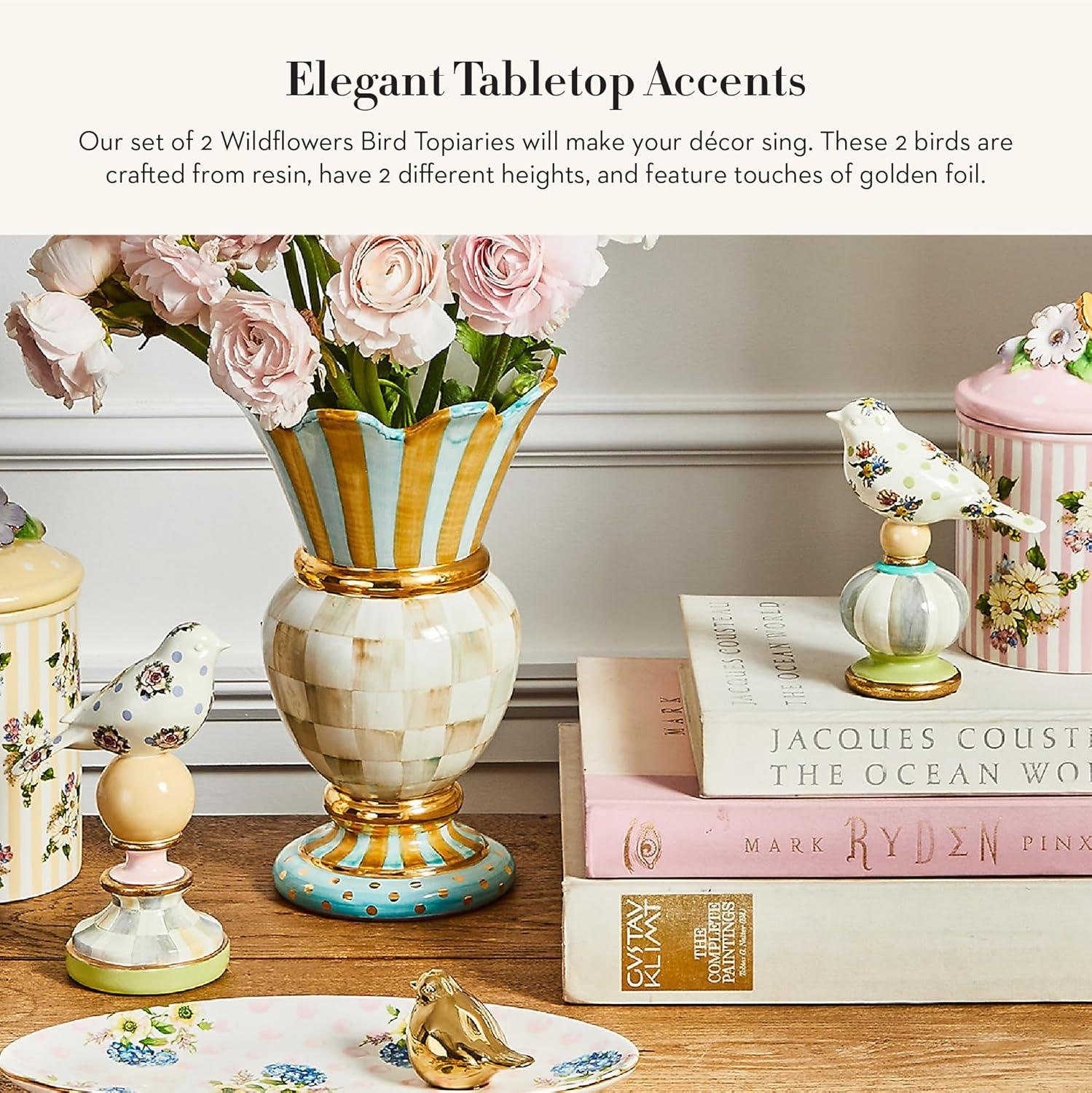 MACKENZIE-CHILDS Bird Topiaries, Decorative Bird Decor for Living Room or Bedroom Table Decor, Set of 2, Wildflowers(Wildflowers)