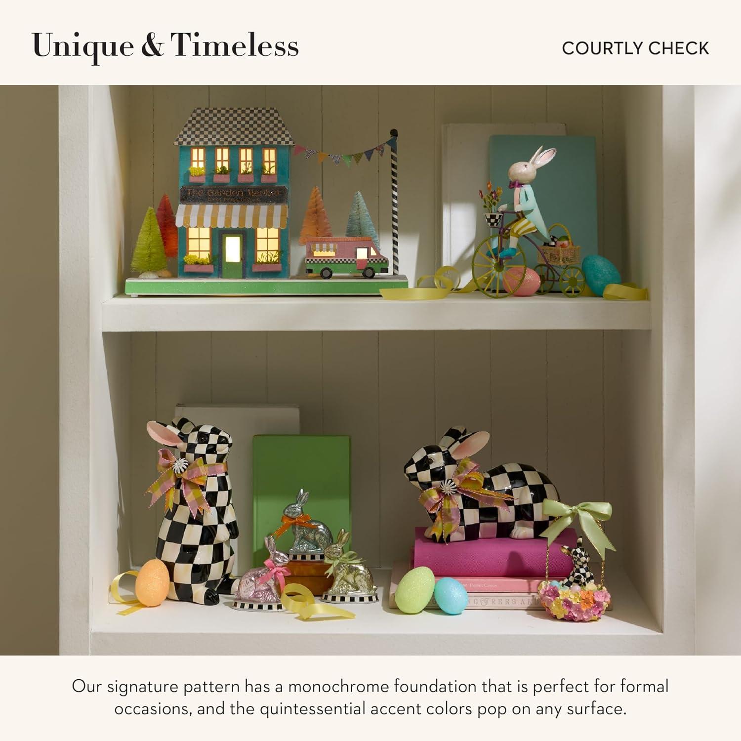 MACKENZIE-CHILDS Bunny Figurine, Rabbit Figurine Decoration for Spring, Resting Royal Check(Courtly Check)