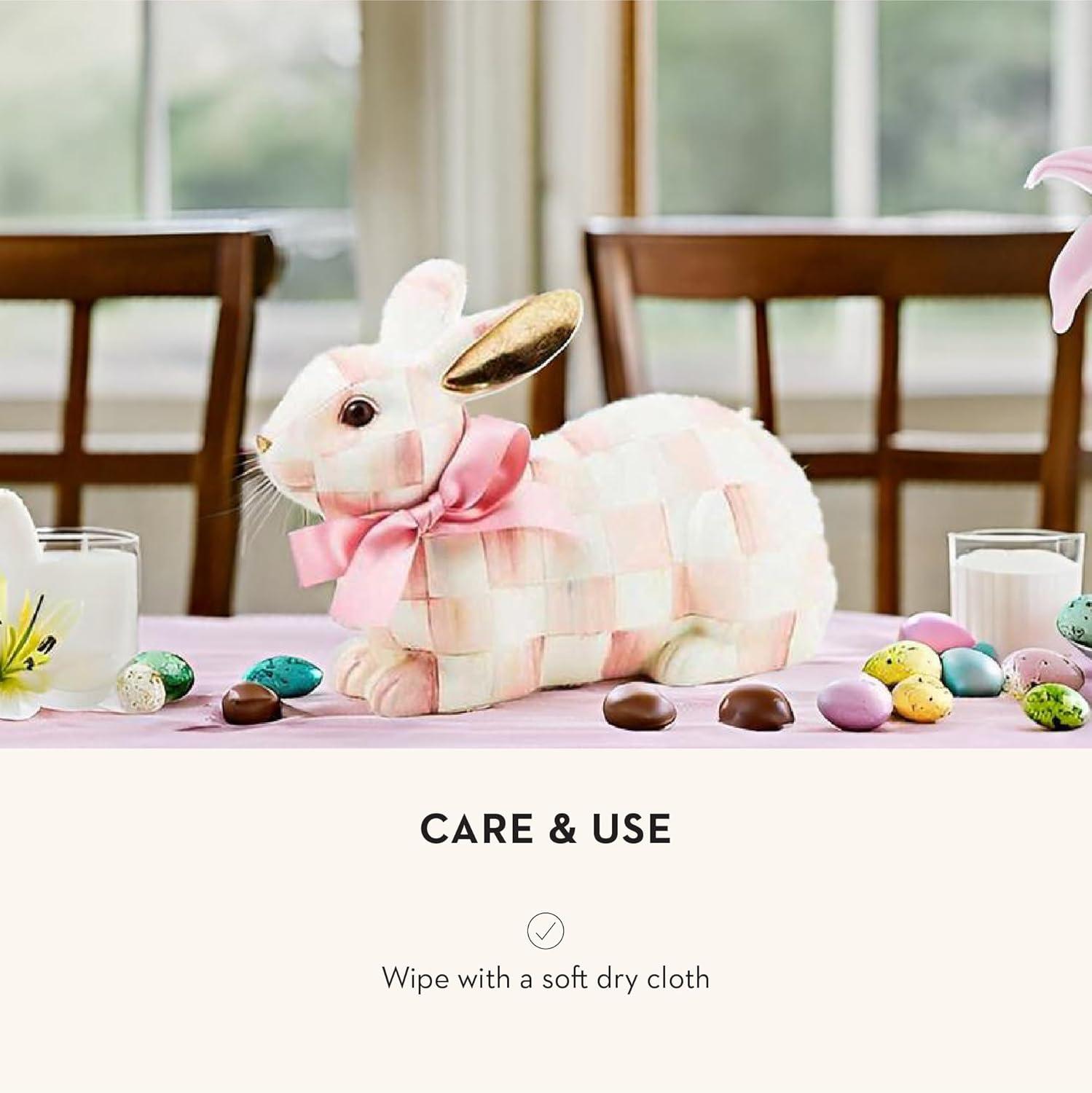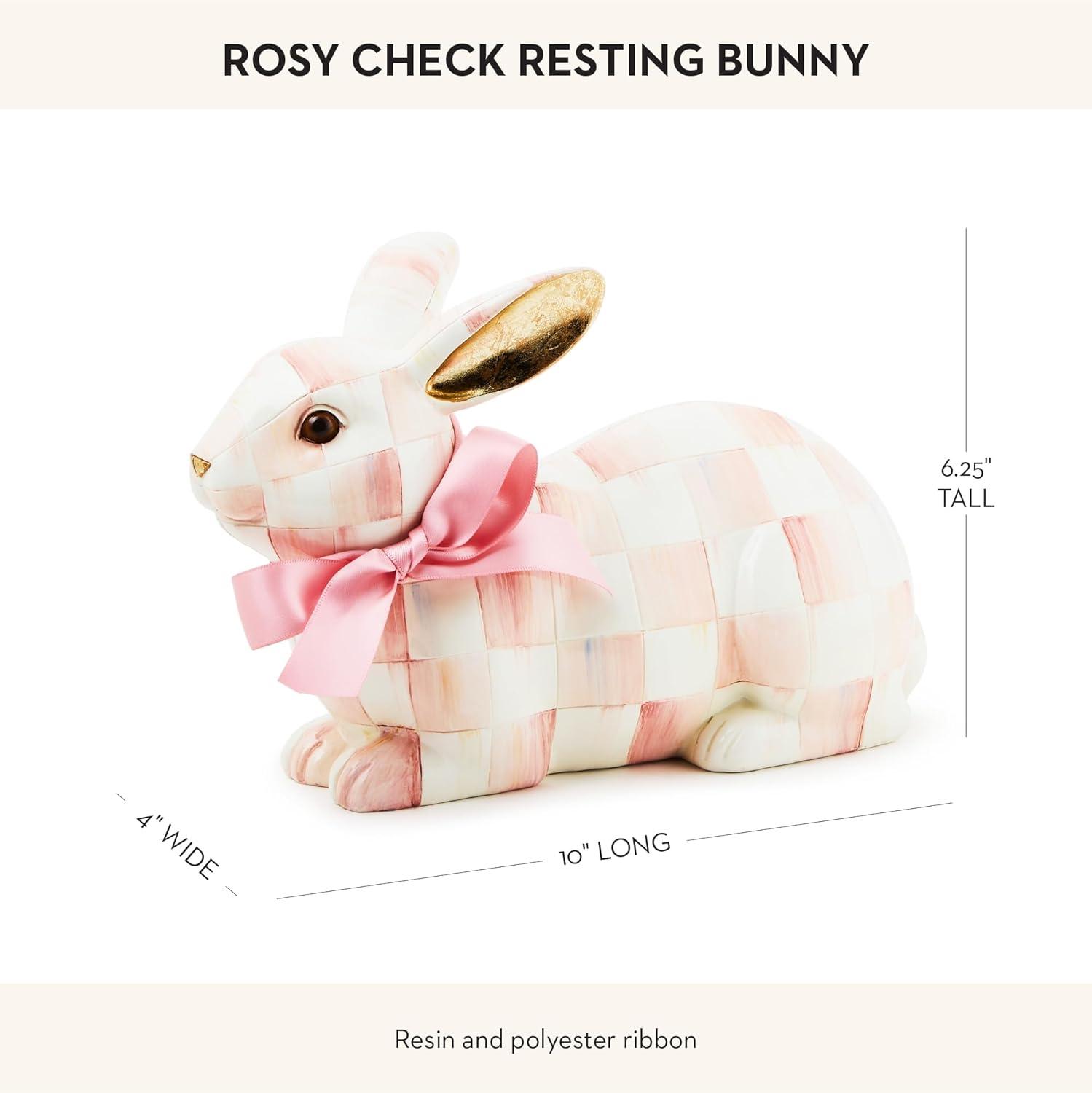 MACKENZIE-CHILDS Bunny Figurine, Rabbit Figurine Decoration for Spring, Resting Royal Check(Rosy Check)
