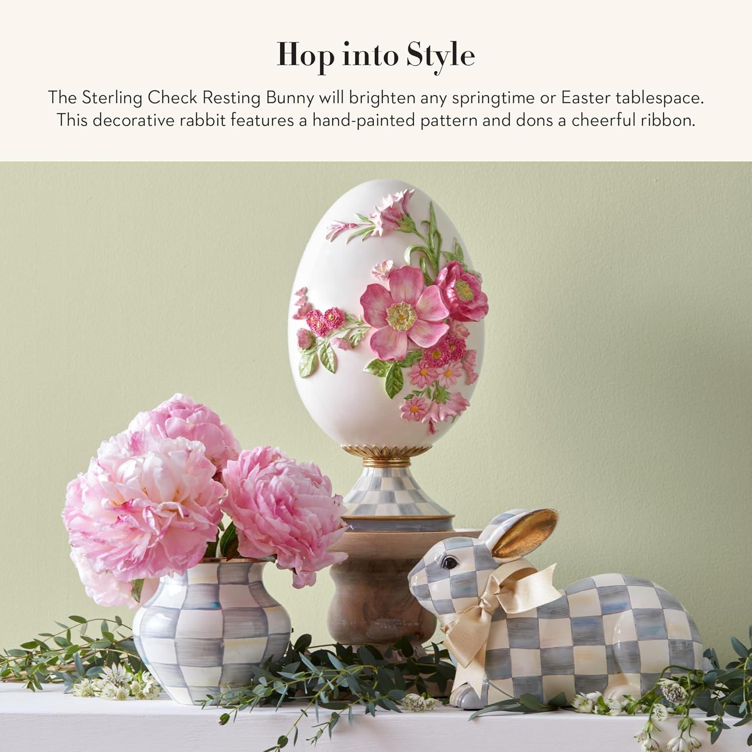 MACKENZIE-CHILDS Bunny Figurine, Rabbit Figurine Decoration for Spring, Resting Royal Check(Sterling Check)