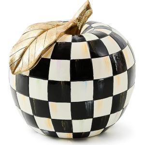 MACKENZIE-CHILDS Fruit Decor, Resin Home and Table Decor, Apple, Black-and-White Courtly Check(Apple)