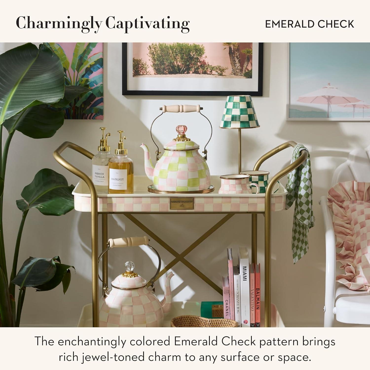 MACKENZIE-CHILDS LED Rechargeable Cafe Table Lamp, Cordless Decorative Lamp, Green-and-White Emerald Check(Mocha Check)