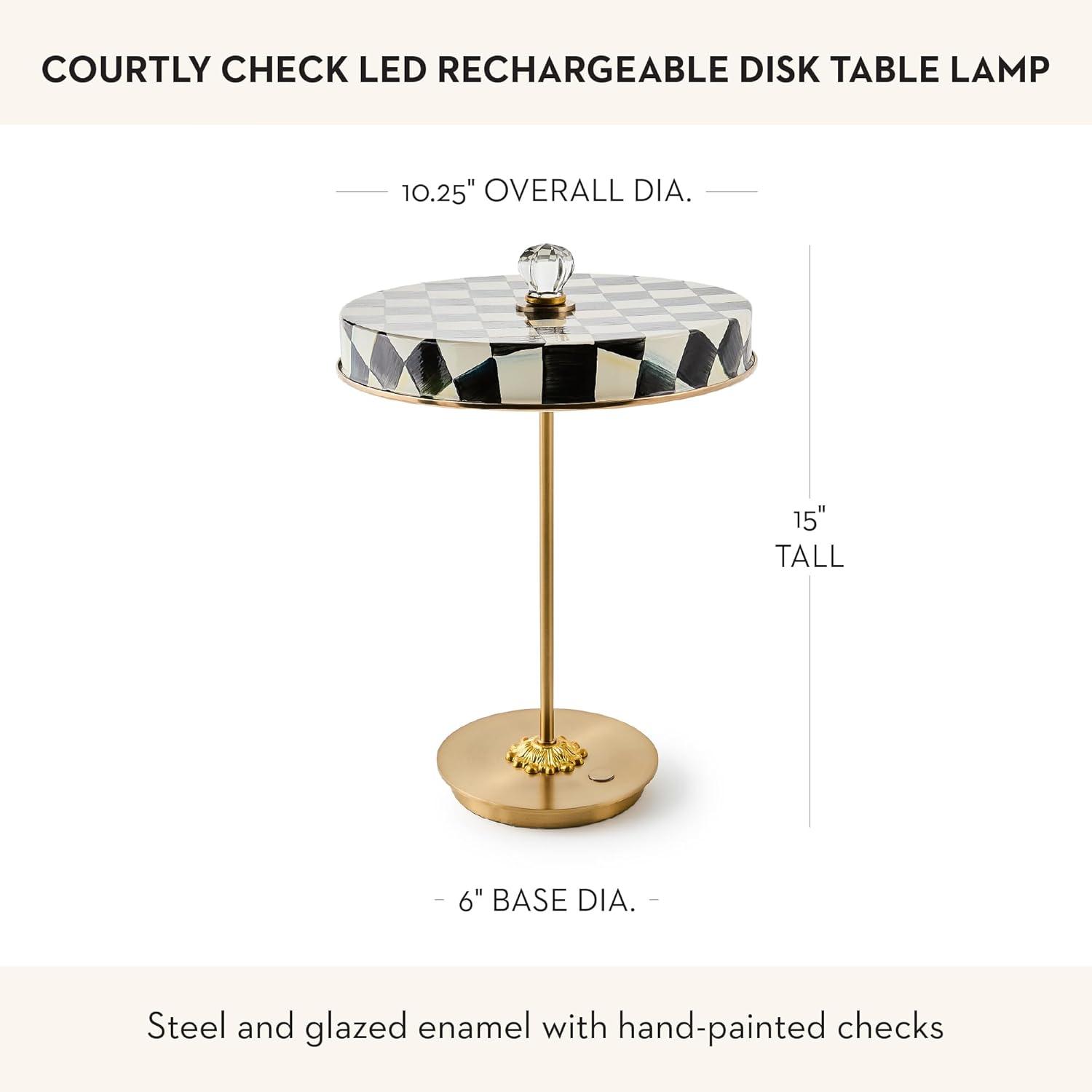 MACKENZIE-CHILDS LED Rechargeable Disk Table Lamp, Cordless Touch Lamp, Gray-and-White Sterling Check(Courtly Check)
