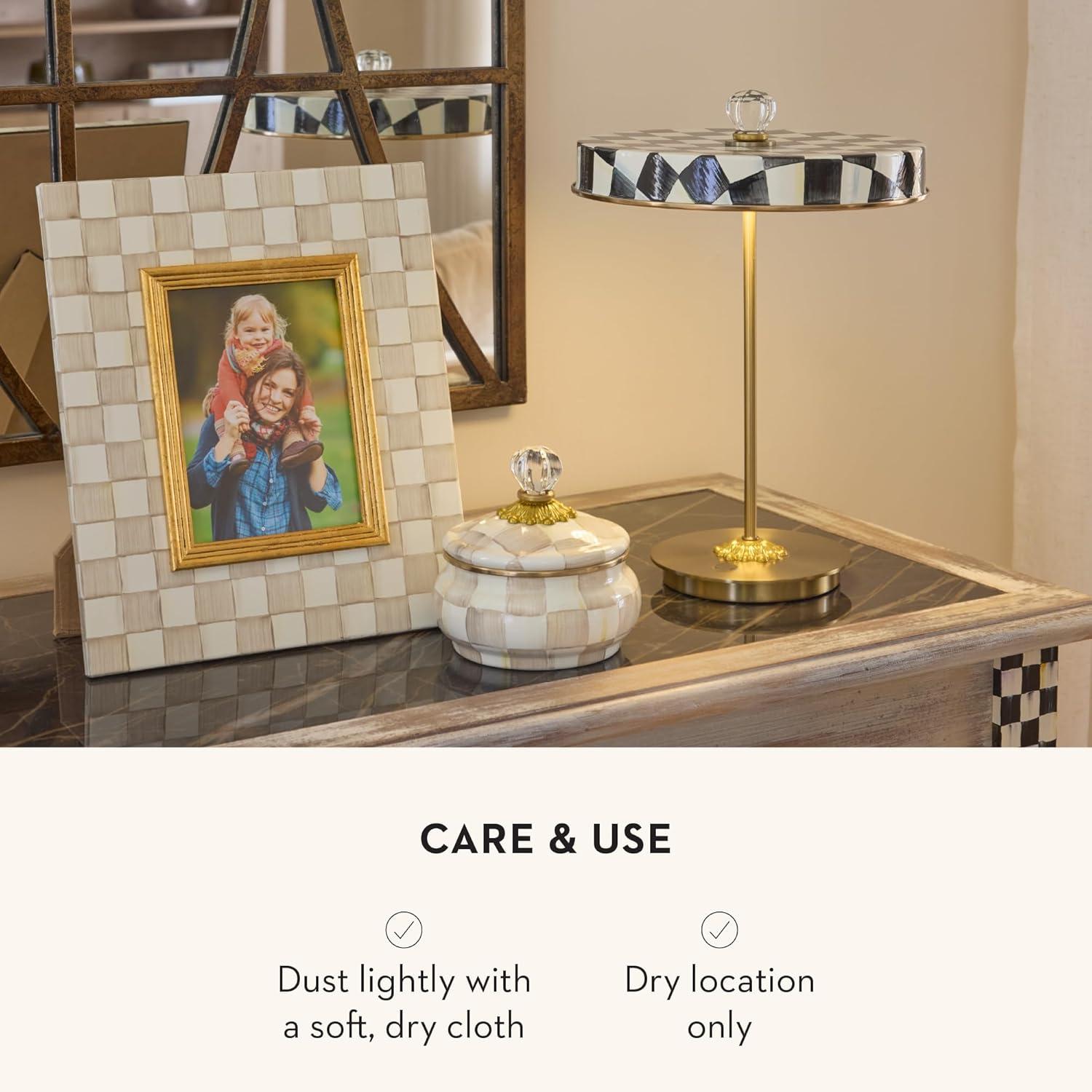 MACKENZIE-CHILDS LED Rechargeable Cafe Table Lamp, Cordless Decorative Lamp, Black-and-White Courtly Check(Mocha Check)