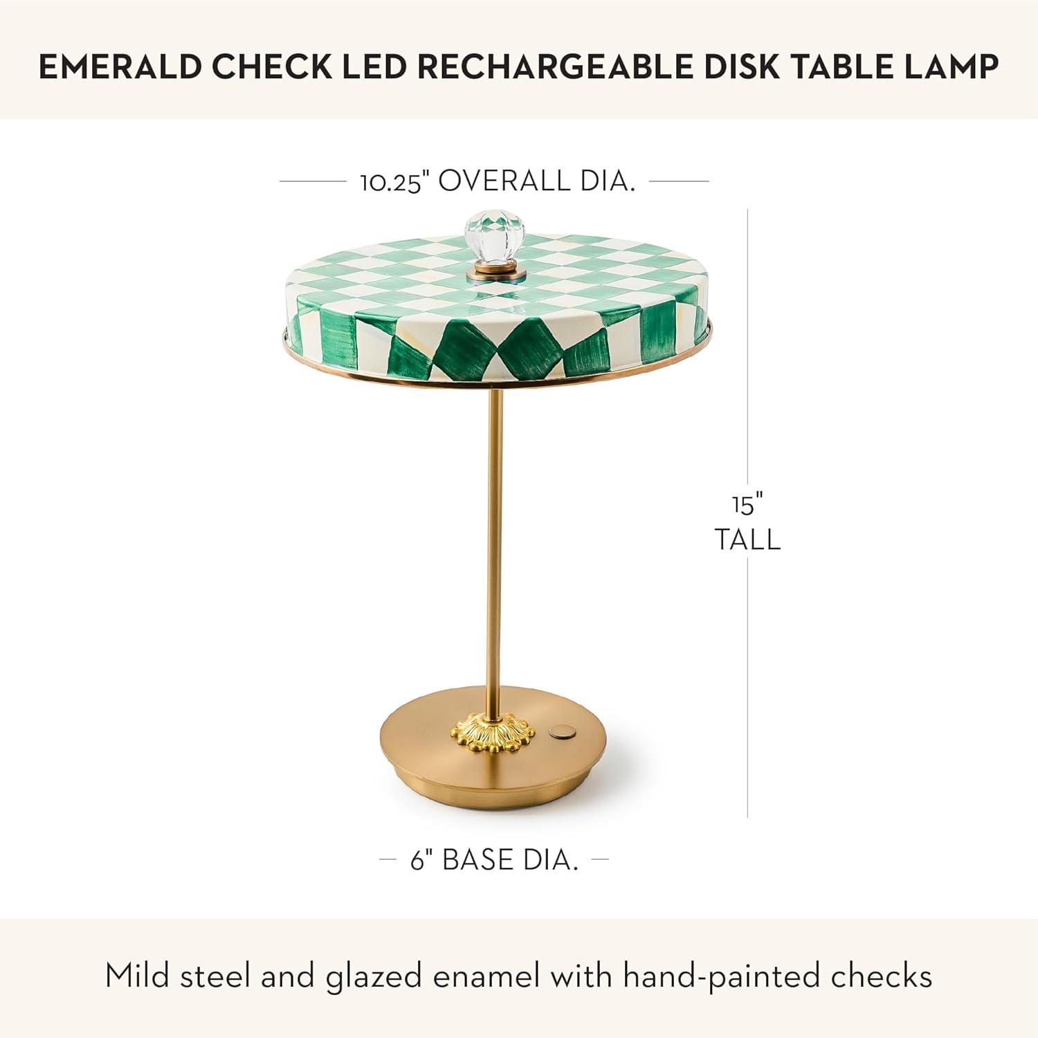 MACKENZIE-CHILDS LED Rechargeable Disk Table Lamp, Cordless Touch Lamp, Gray-and-White Sterling Check(Emerald Check)
