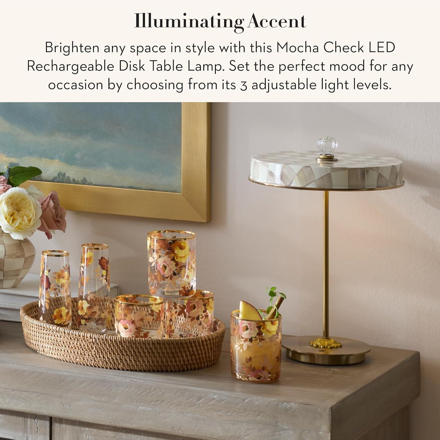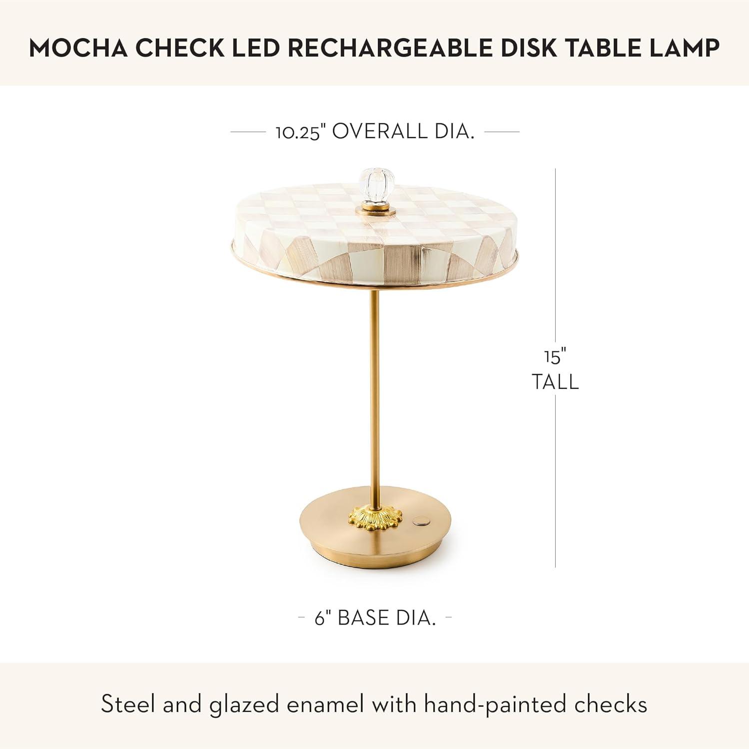 MACKENZIE-CHILDS LED Rechargeable Disk Table Lamp, Cordless Touch Lamp, Gray-and-White Sterling Check(Mocha Check)
