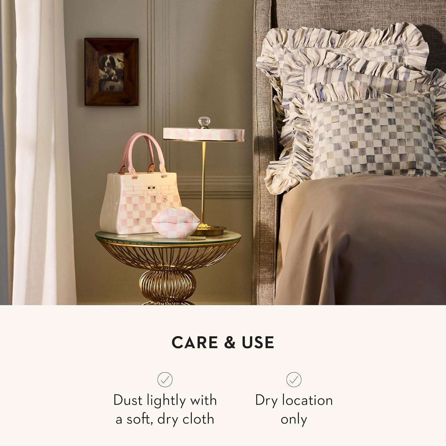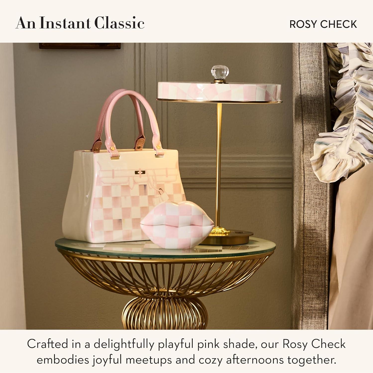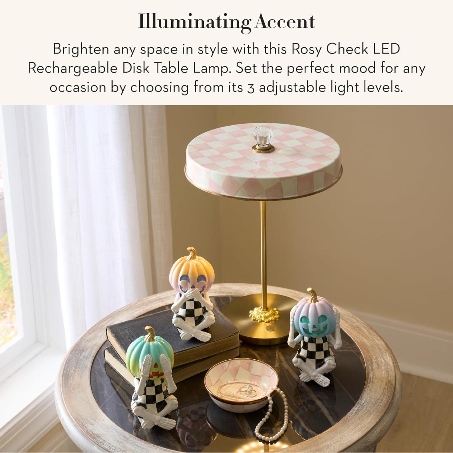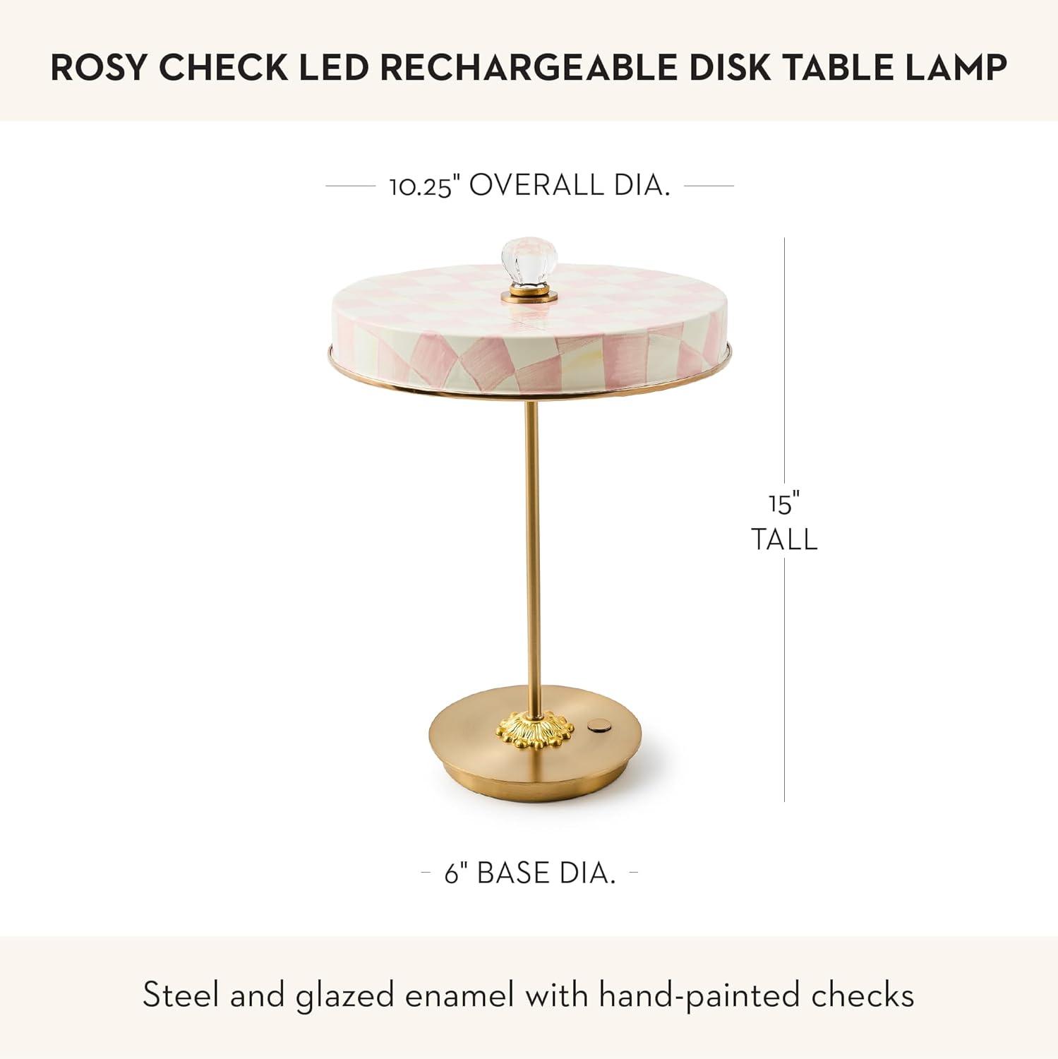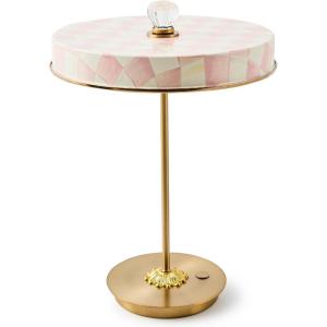 MACKENZIE-CHILDS LED Rechargeable Disk Table Lamp, Cordless Touch Lamp, Gray-and-White Sterling Check(Rosy Check)
