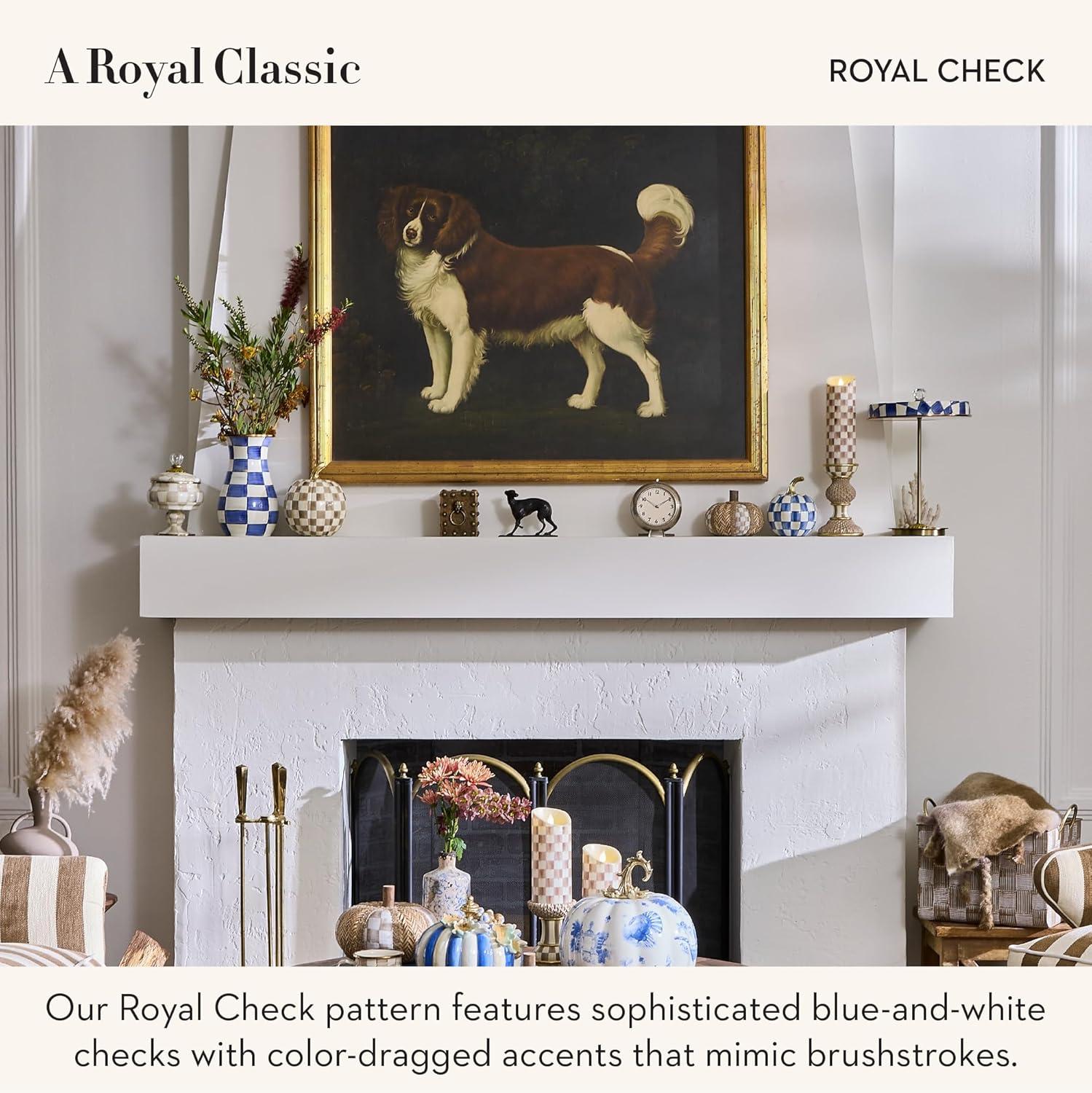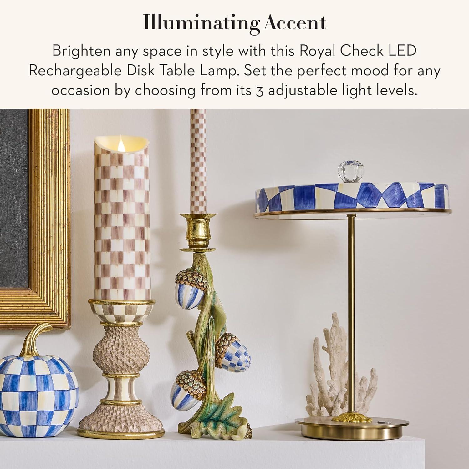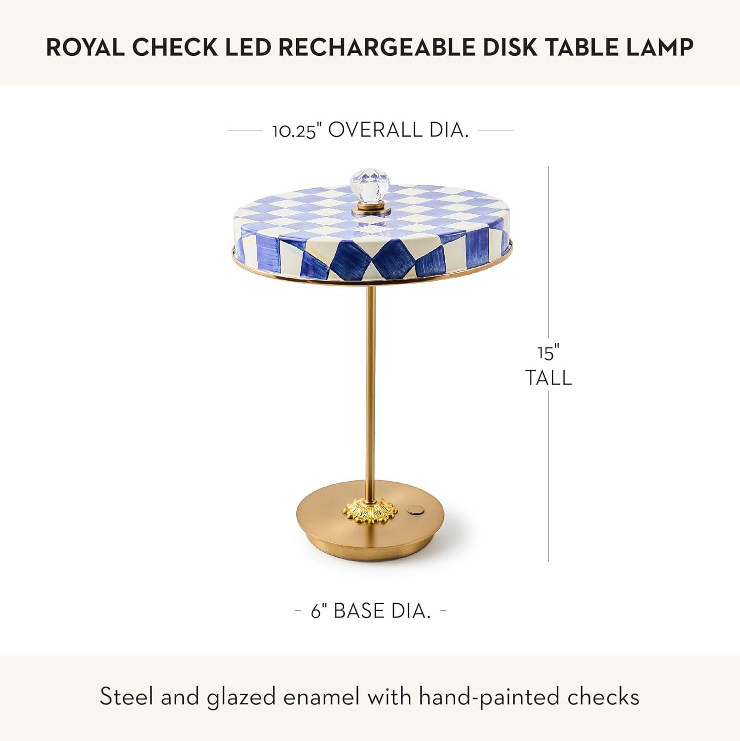 MACKENZIE-CHILDS LED Rechargeable Disk Table Lamp, Cordless Touch Lamp, Gray-and-White Sterling Check(Royal Check)