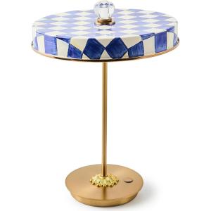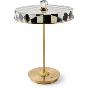 MACKENZIE-CHILDS LED Rechargeable Cafe Table Lamp, Cordless Decorative Lamp, Black-and-White Courtly Check(Courtly Check)