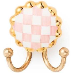 MACKENZIE-CHILDS Round Hook, Decorative Wall Hook, Pink-and-White Rosy Check(Rosy Check)