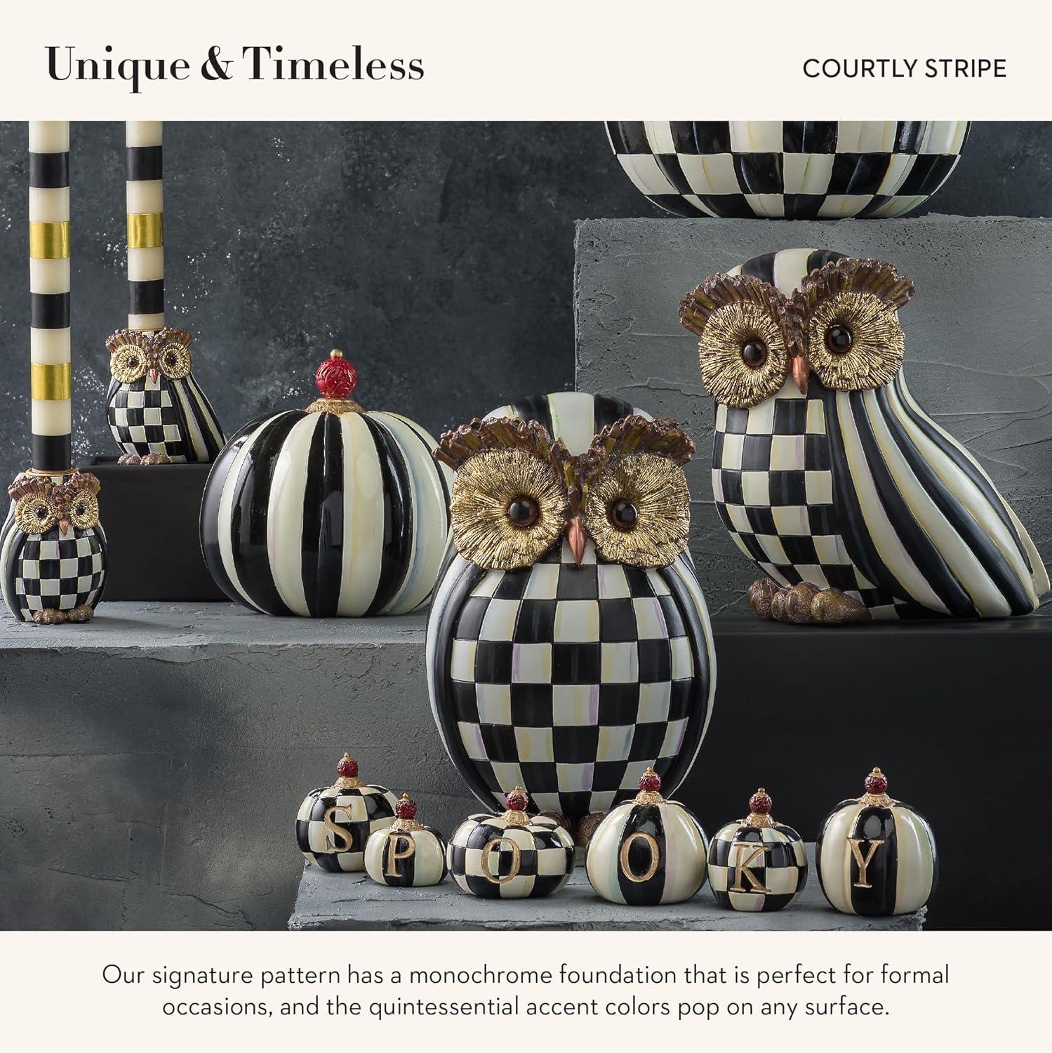 MACKENZIE-CHILDS Owl, Fall Owl Decor for Home, Black-and-White Courtly Stripe
