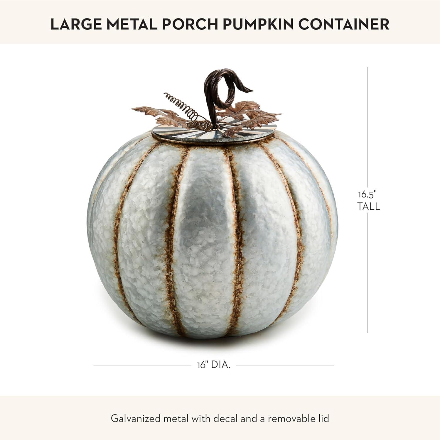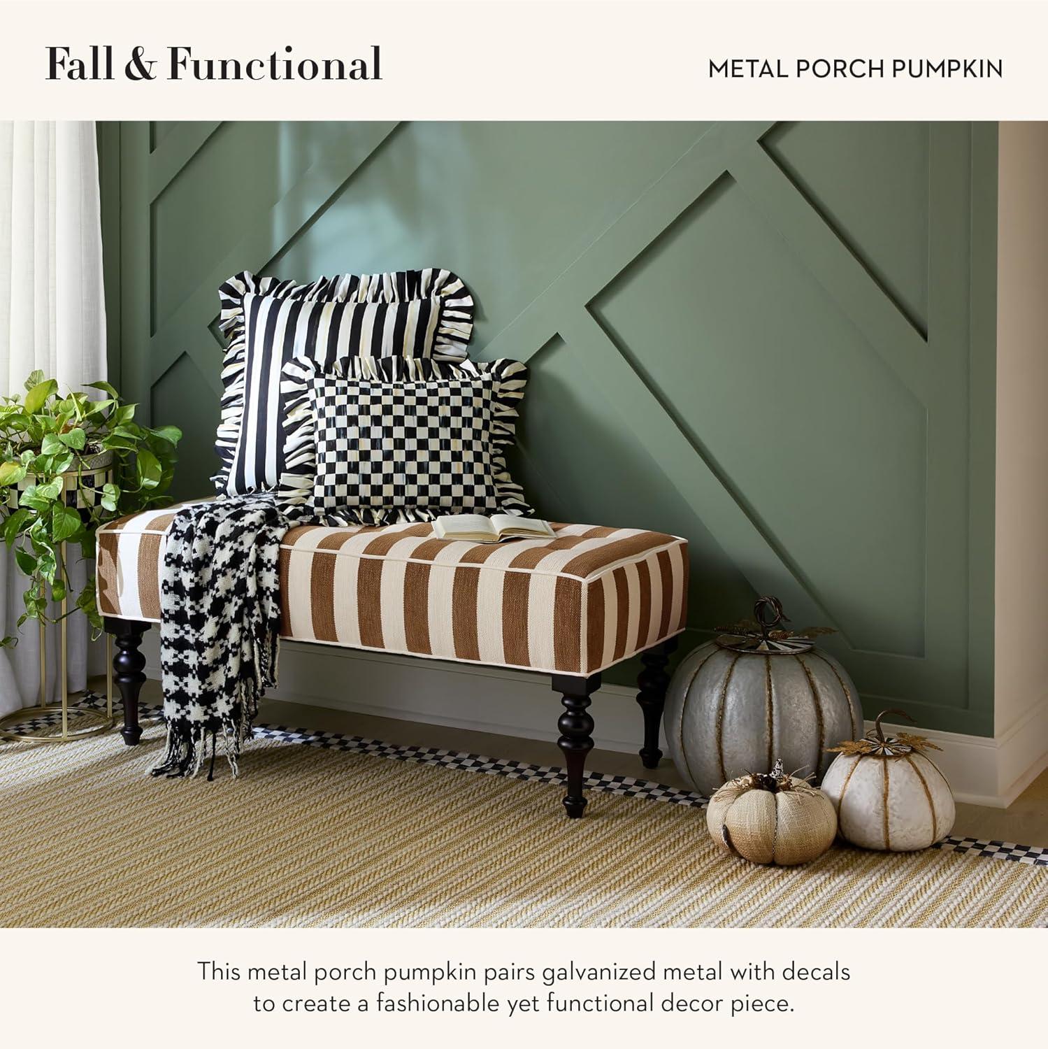 MACKENZIE-CHILDS Porch Decor Metal Pumpkin Container, Halloween Metal Container Home Decor with Lid, Large(Large)