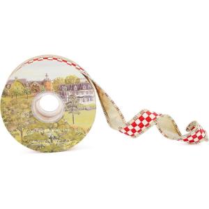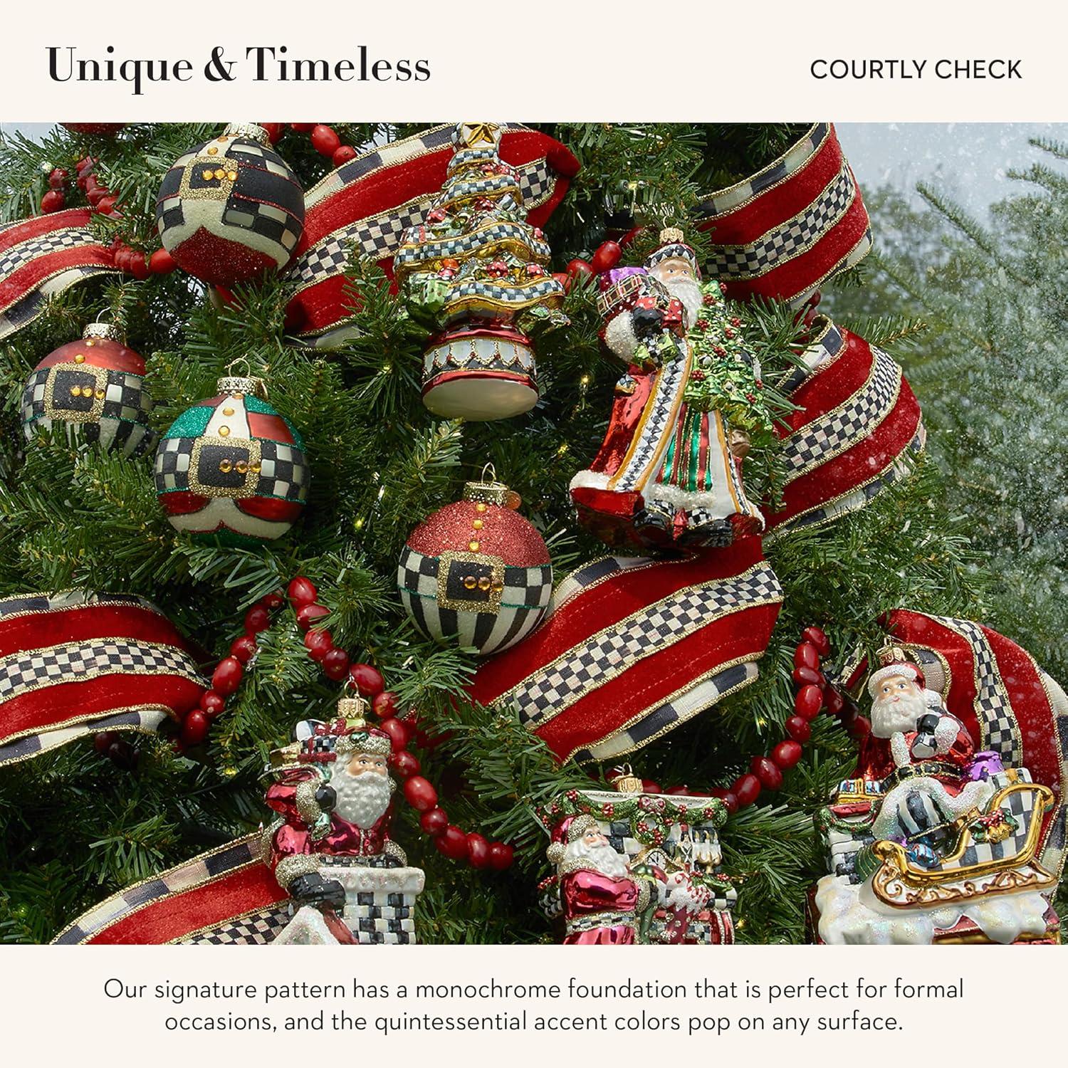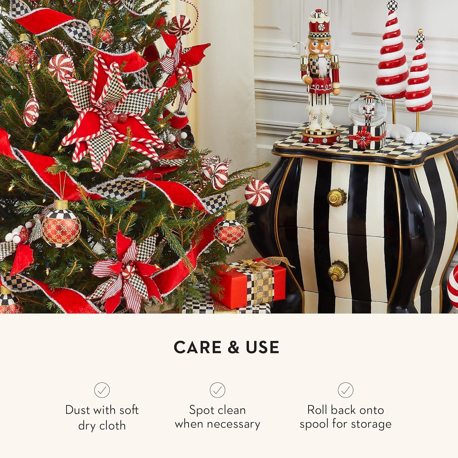 MACKENZIE-CHILDS Ribbon, Decorative Wired Ribbon for Christmas Gift Wrapping and Decor, 4 Inches, Brown-and-White Mocha Check Suede(Courtly Regal Red)