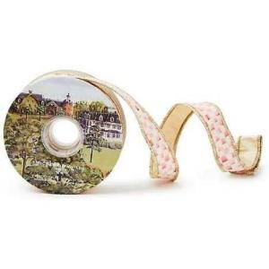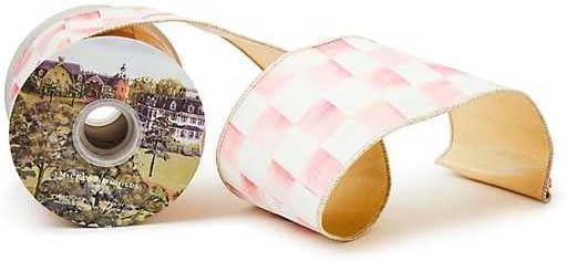 MACKENZIE-CHILDS Ribbon, Decorative Wired Ribbon for Christmas Gift Wrapping and Decor, 4 Inches, Brown-and-White Mocha Check Suede(Rosy Check)