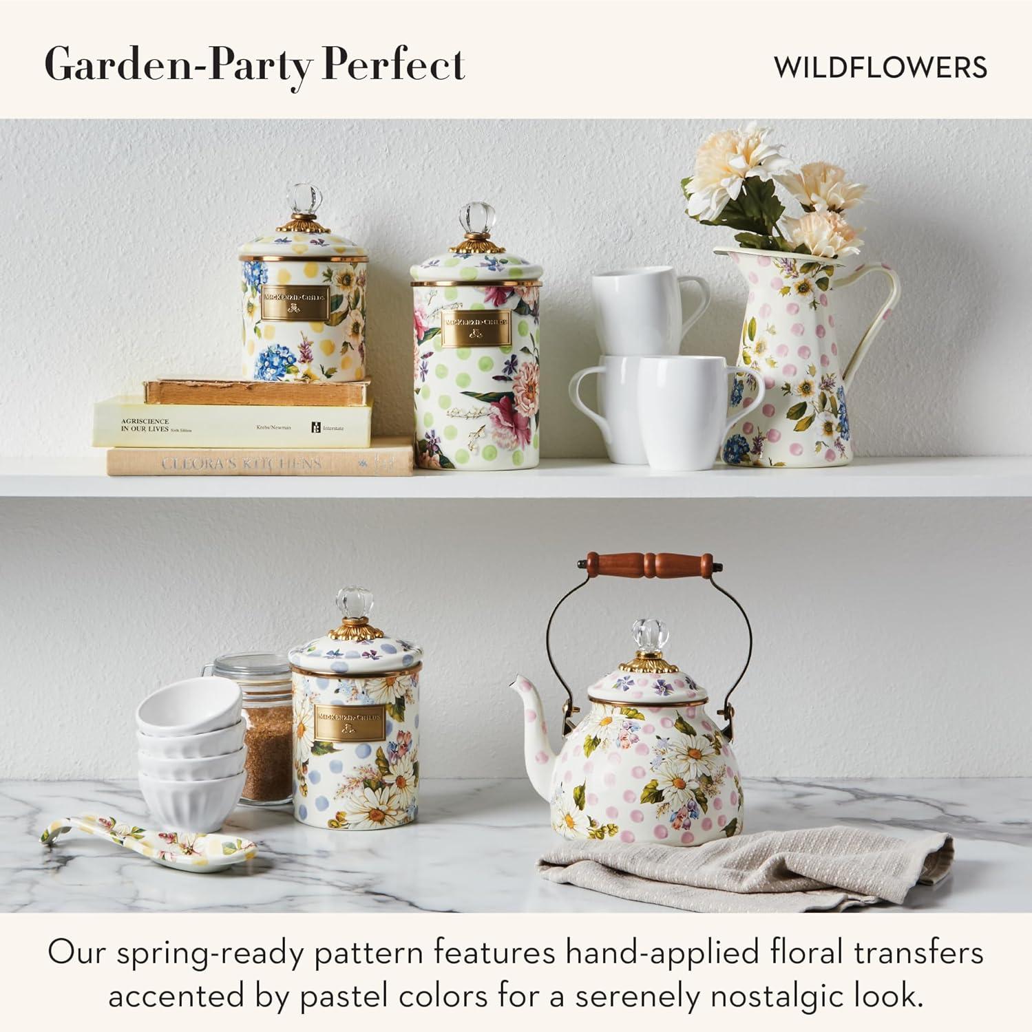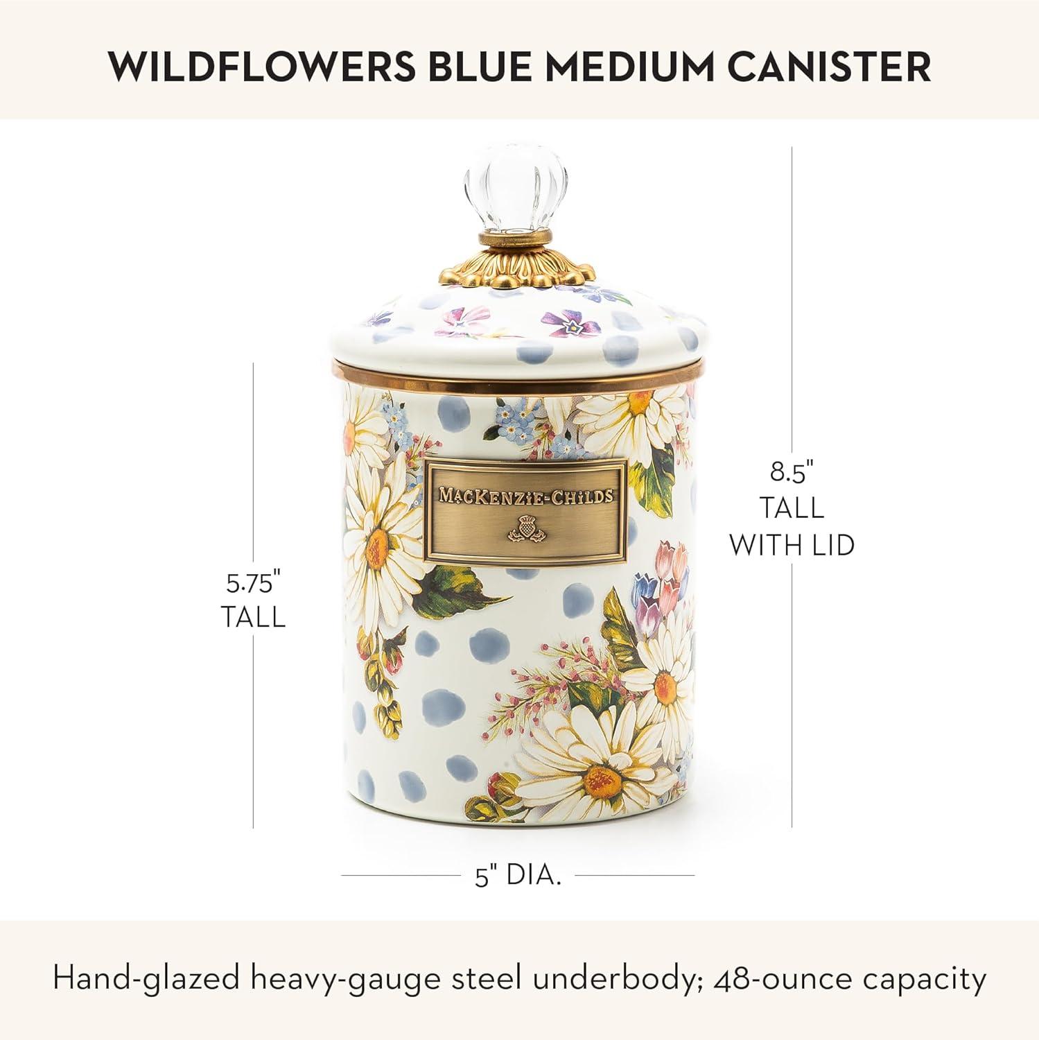 MACKENZIE-CHILDS Wildflowers Enamel Canister, Floral Kitchen Storage Container with Lid, Medium(Blue Wildflower)
