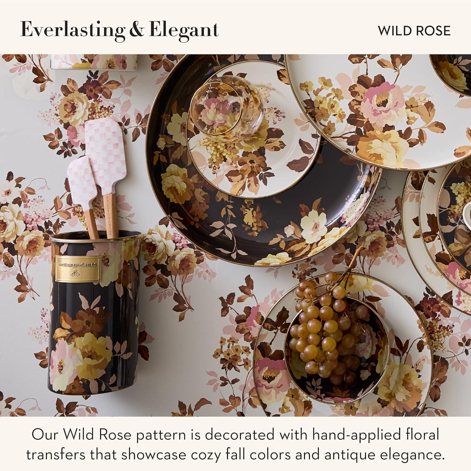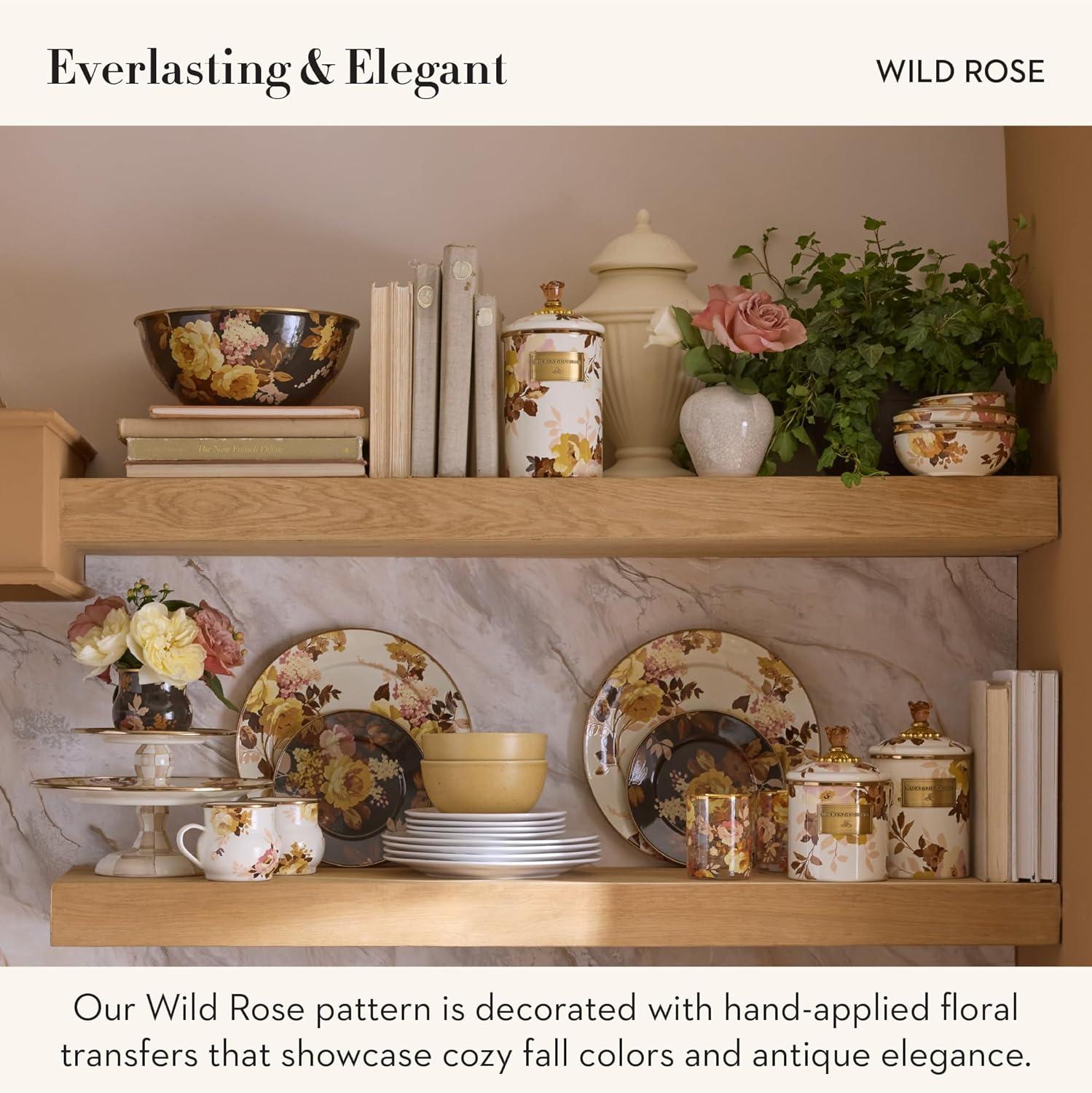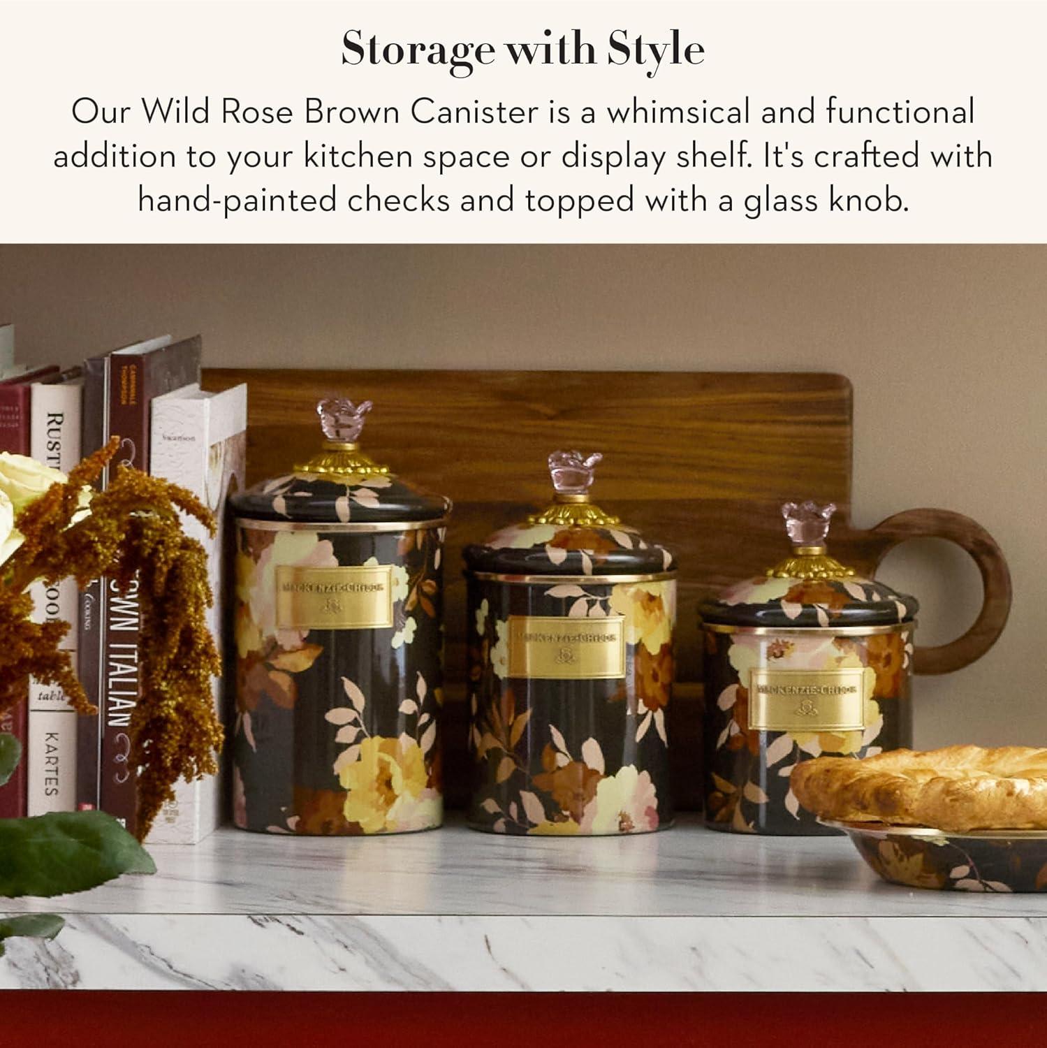 MACKENZIE-CHILDS Wildflowers Enamel Canister, Floral Kitchen Storage Container with Lid, Medium(Brown Wild Rose)