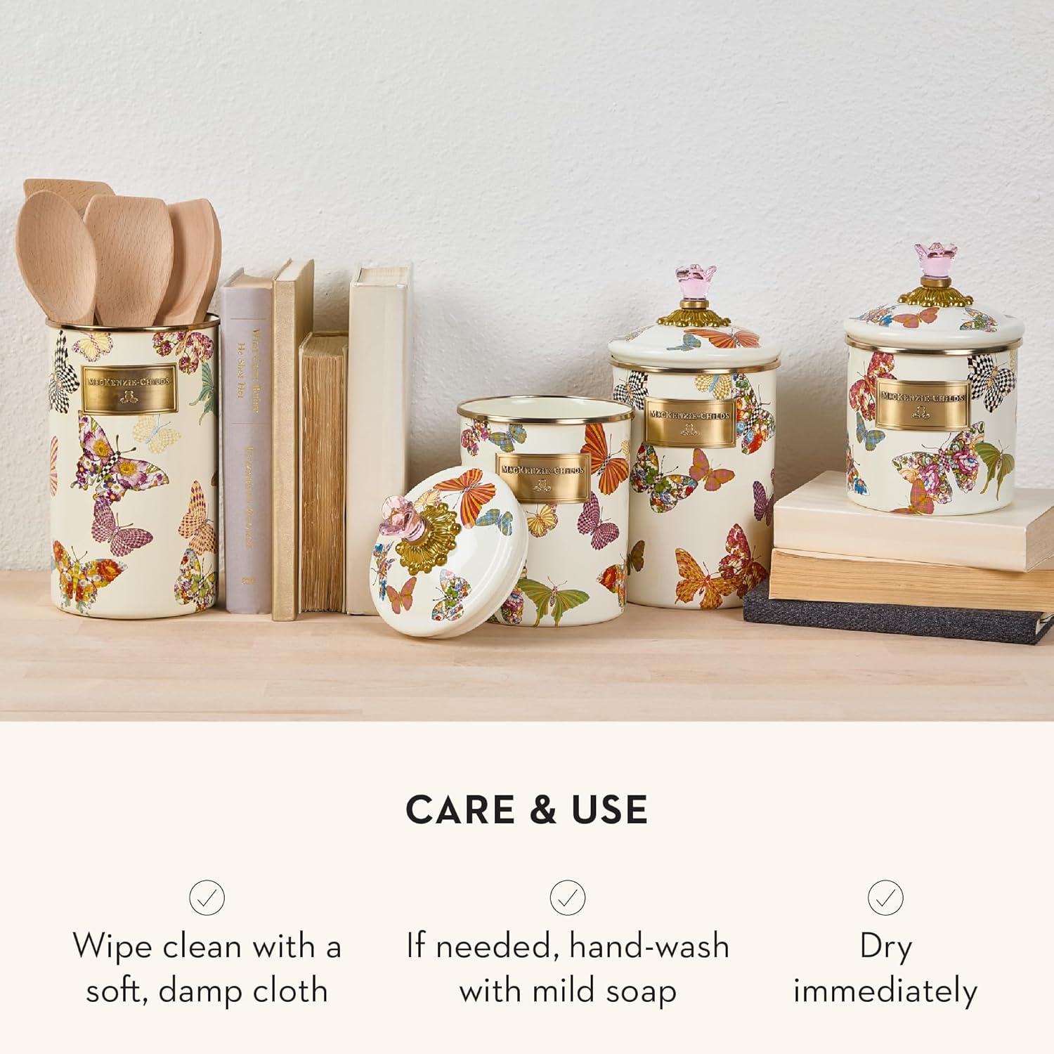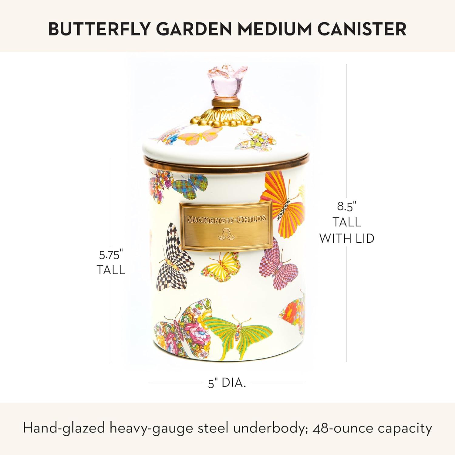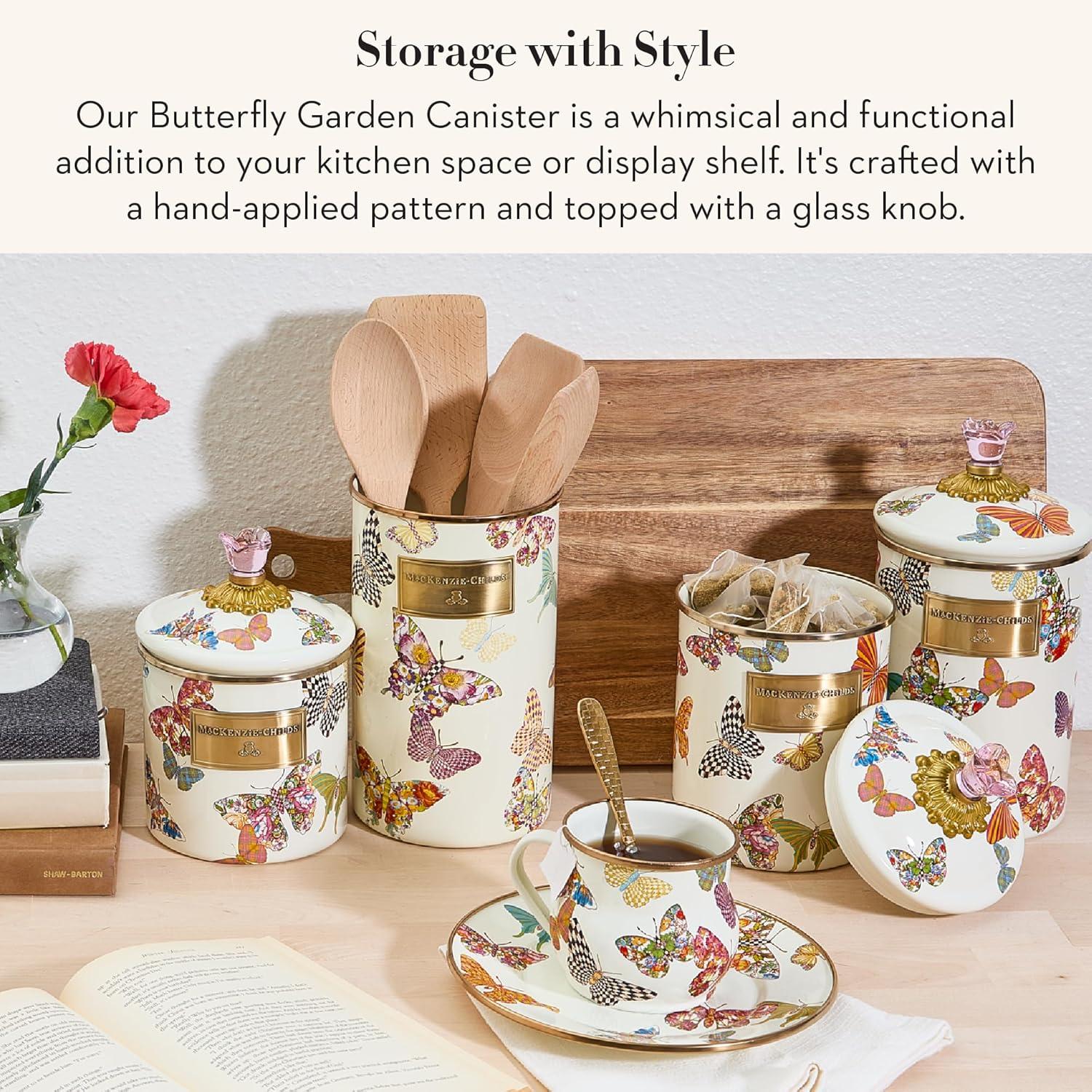 MACKENZIE-CHILDS Wildflowers Enamel Canister, Floral Kitchen Storage Container with Lid, Medium(Butterfly Garden)