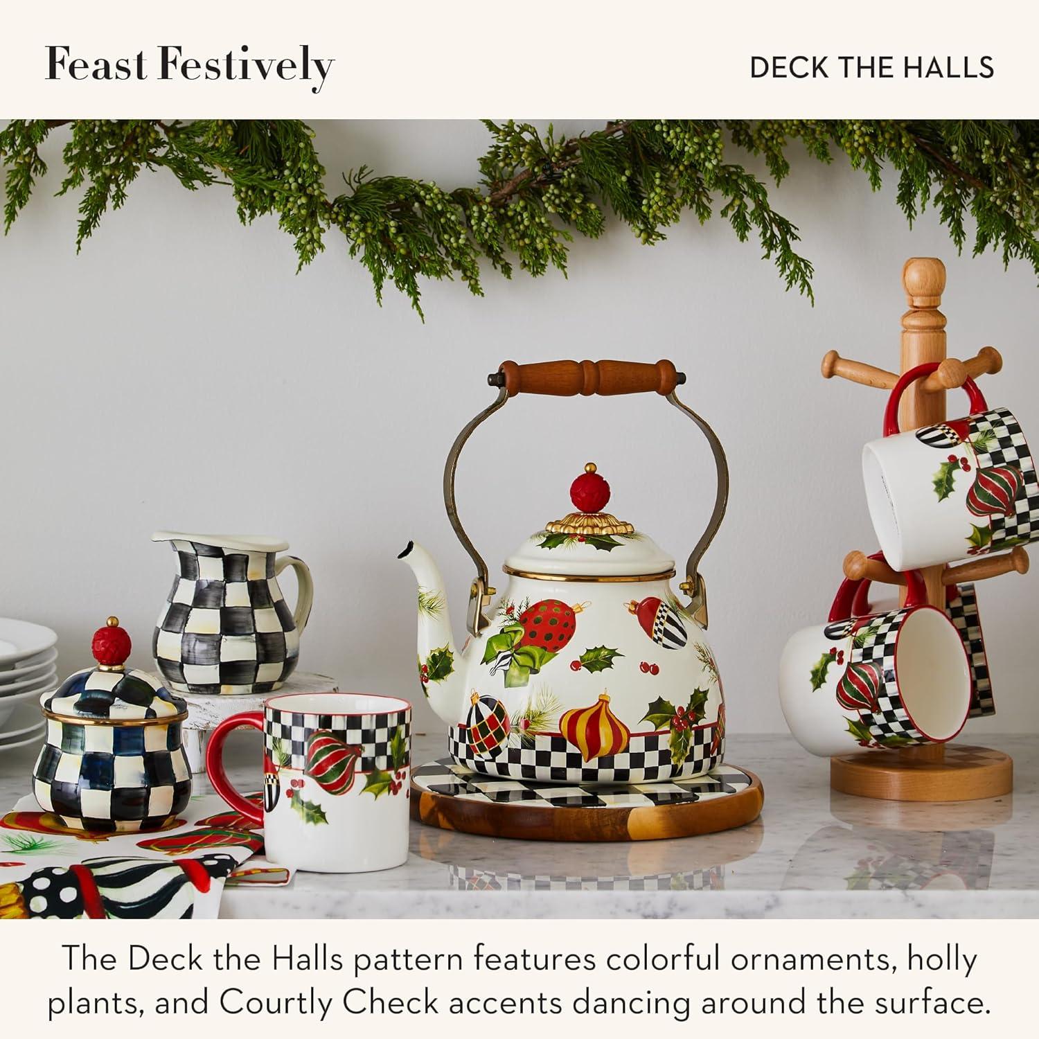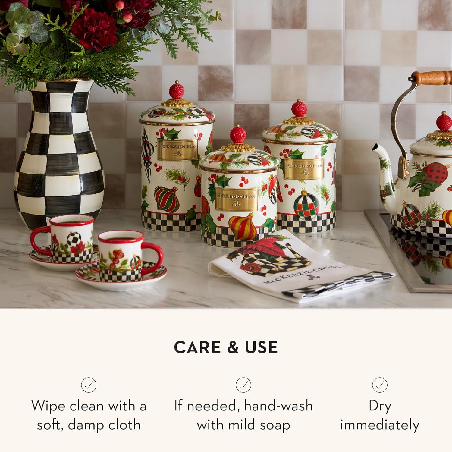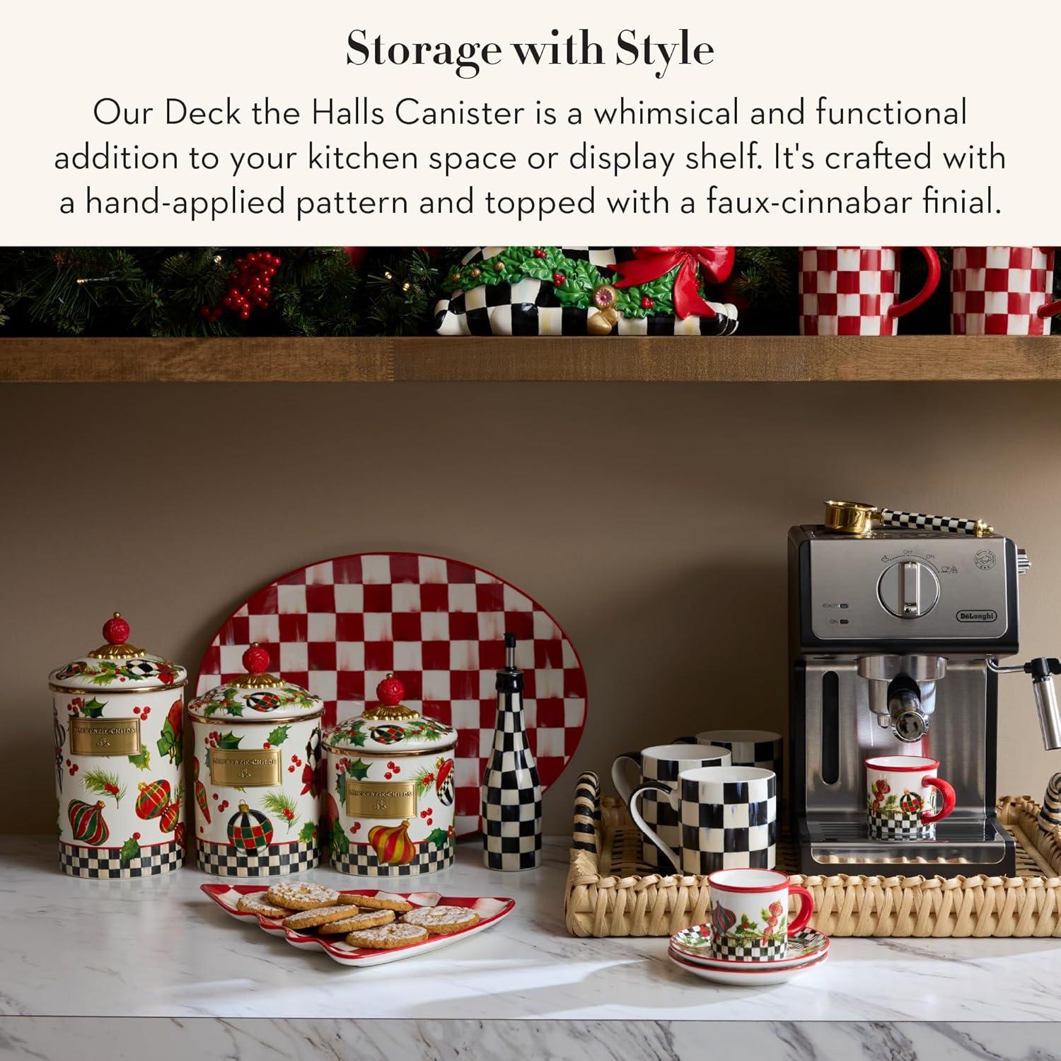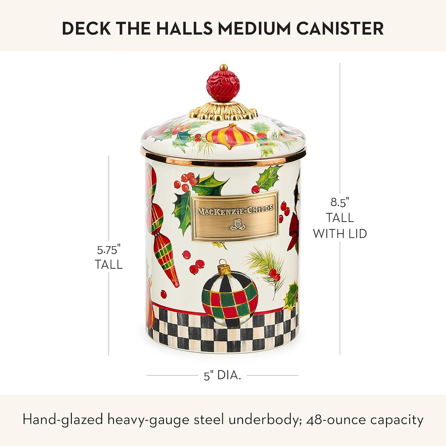 MACKENZIE-CHILDS Wildflowers Enamel Canister, Floral Kitchen Storage Container with Lid, Medium(Deck the Halls)