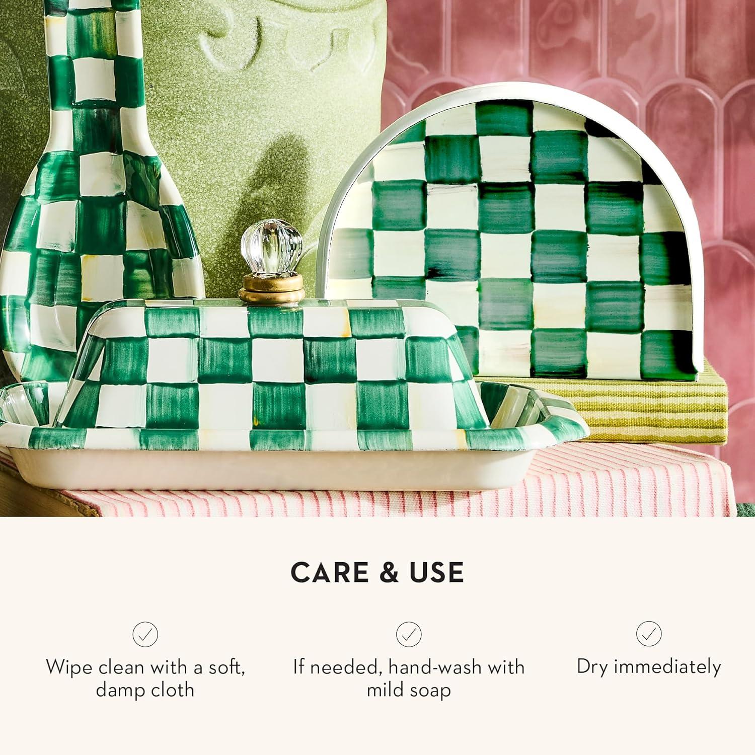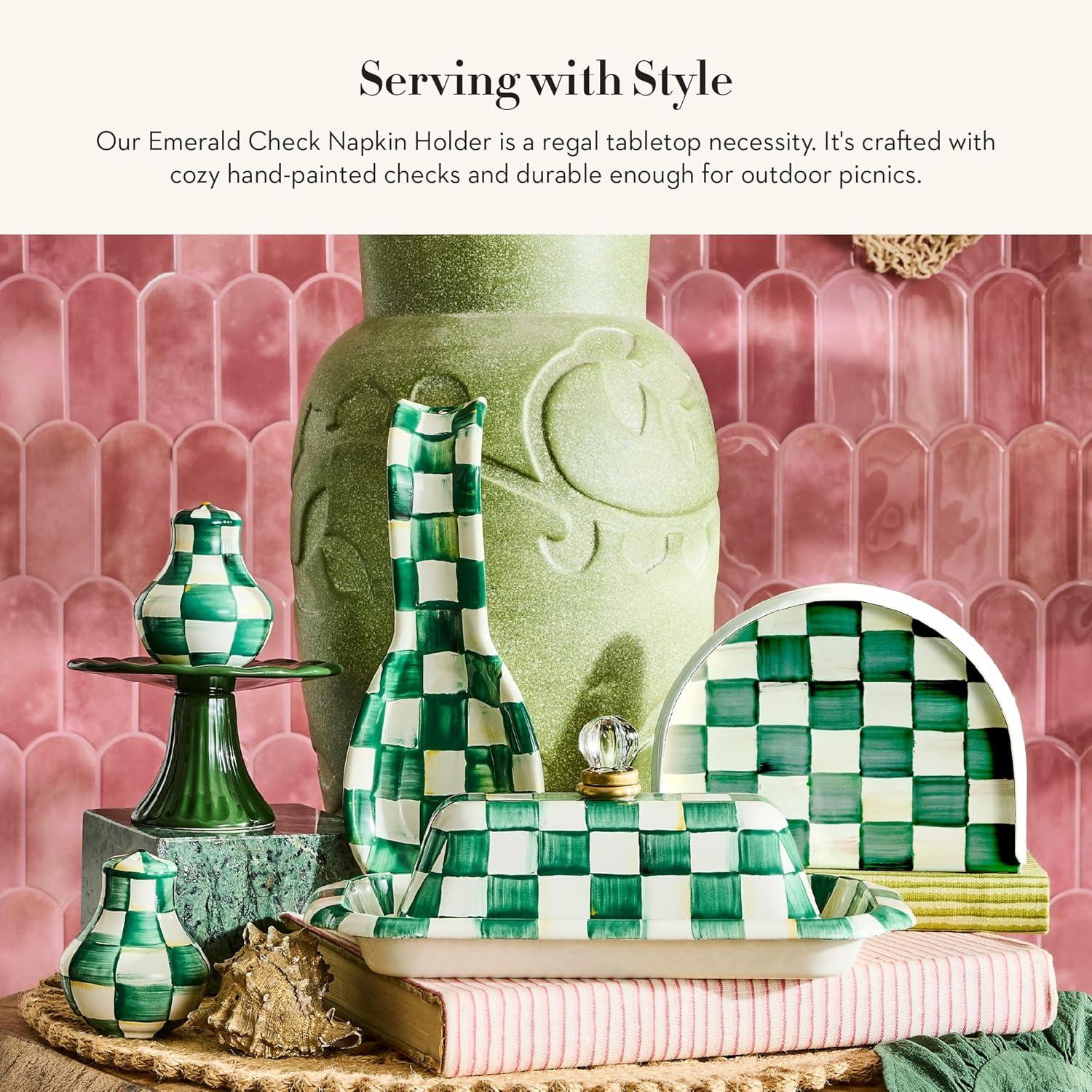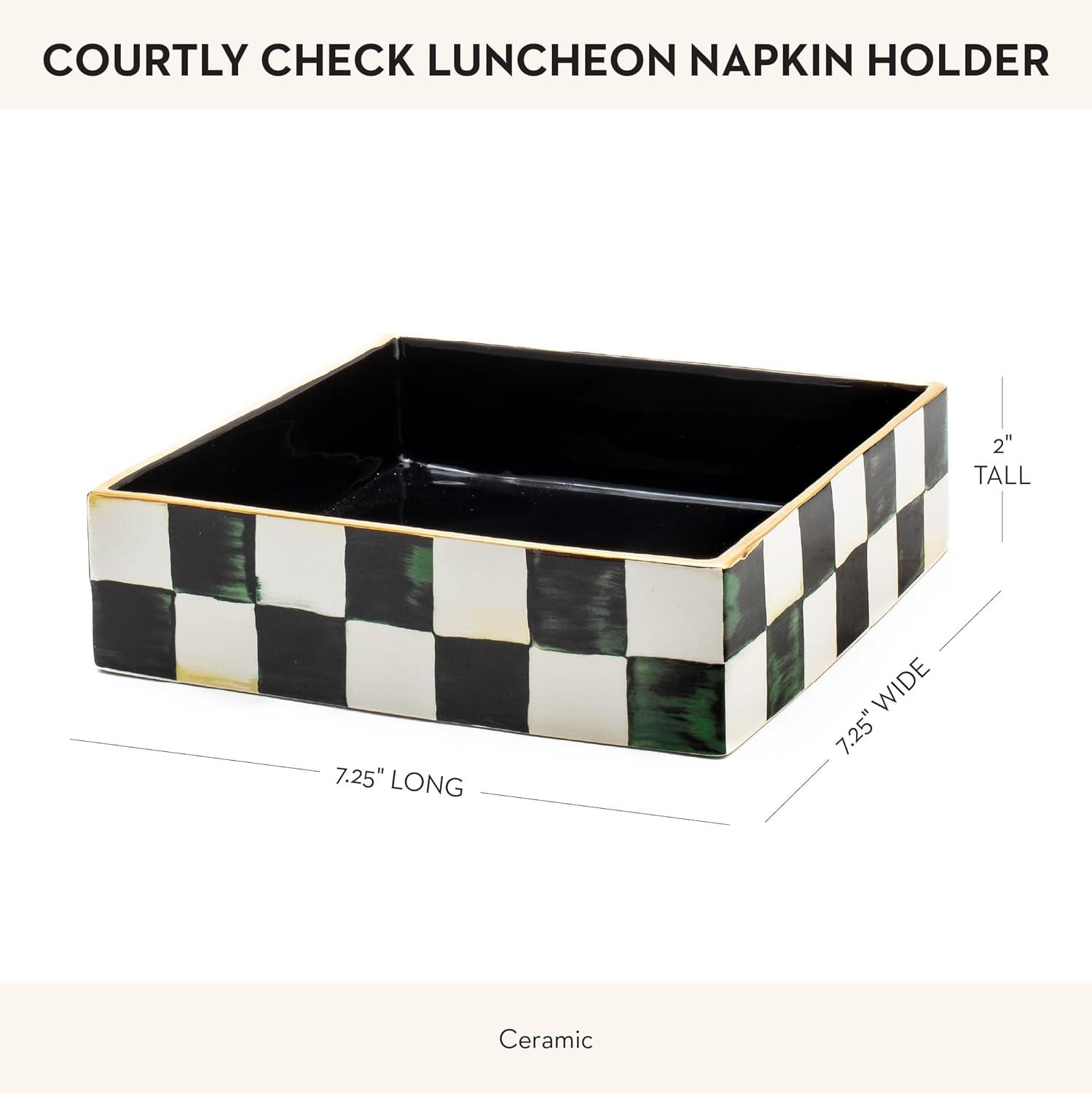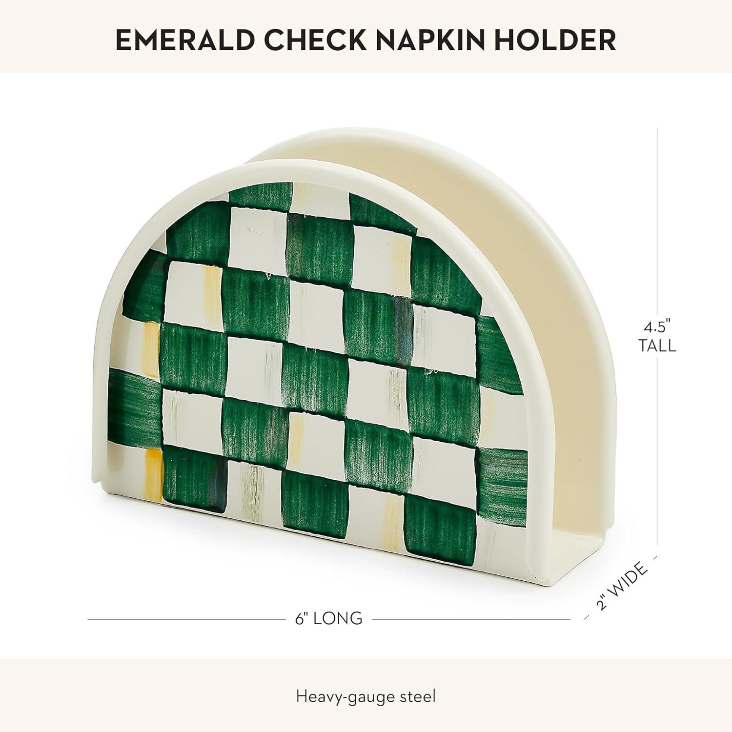 MACKENZIE-CHILDS Cocktail Napkin Holder, Kitchen Napkin Holder for Table and Countertop, Black-and-White Courtly Check(Emerald Check)