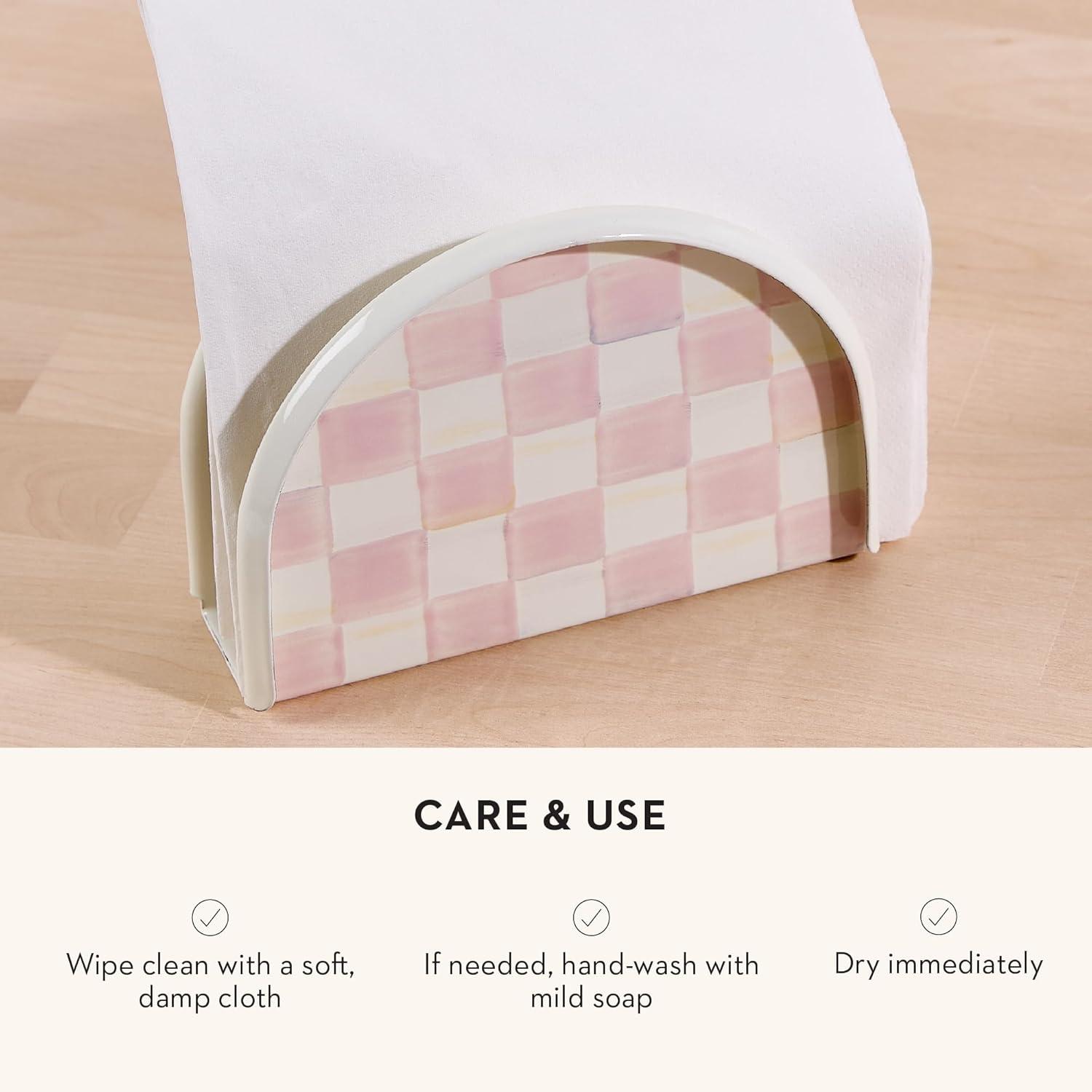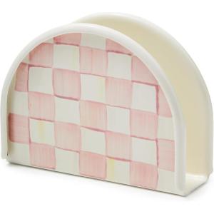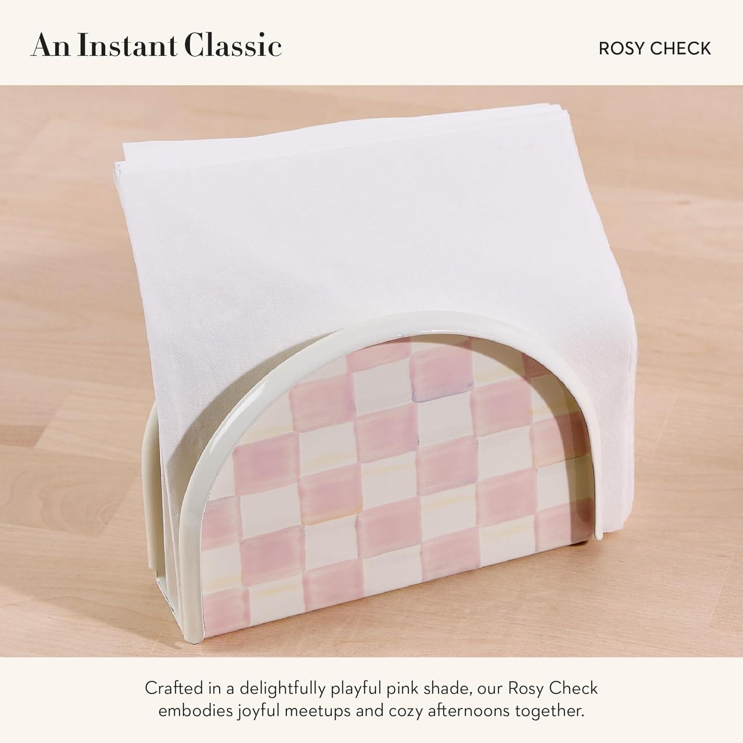 MACKENZIE-CHILDS Cocktail Napkin Holder, Kitchen Napkin Holder for Table and Countertop, Black-and-White Courtly Check(Rosy Check)