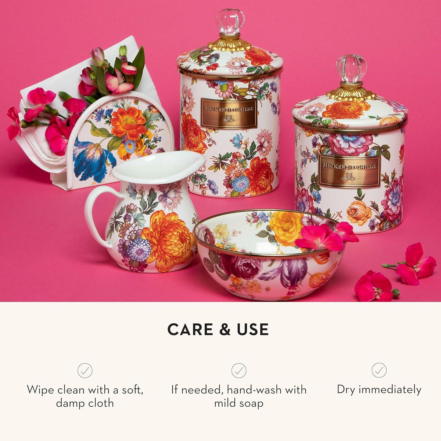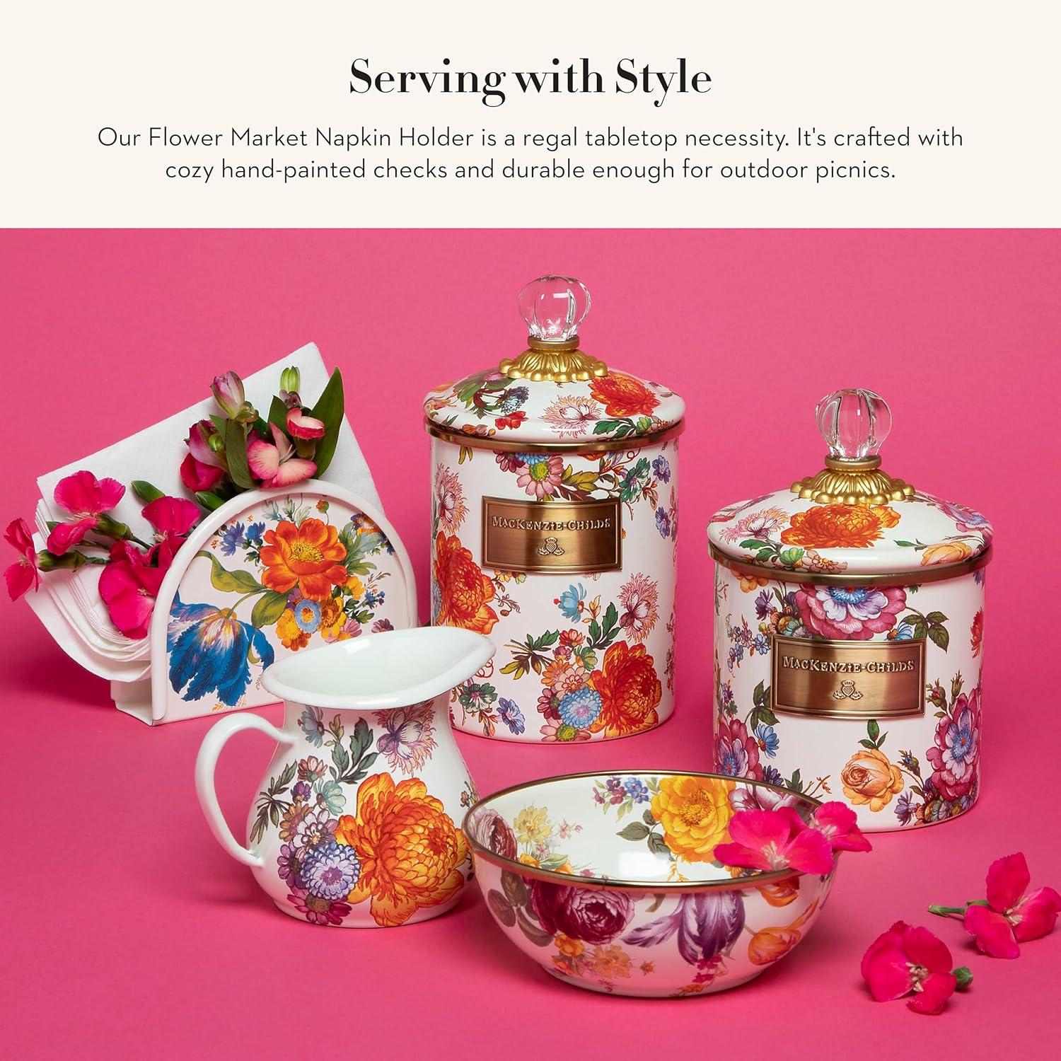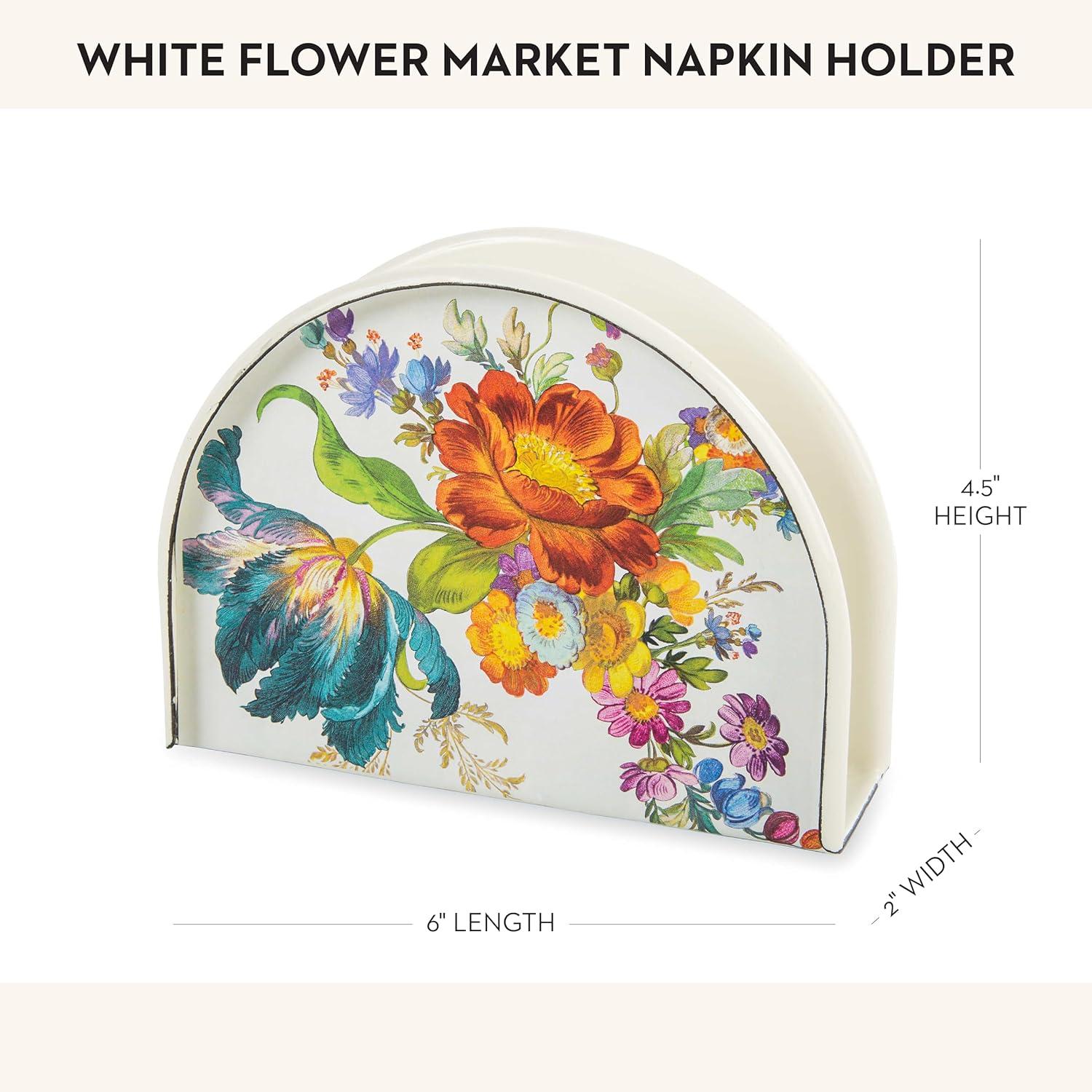 MACKENZIE-CHILDS Cocktail Napkin Holder, Kitchen Napkin Holder for Table and Countertop, Black-and-White Courtly Check(White Flower Market)