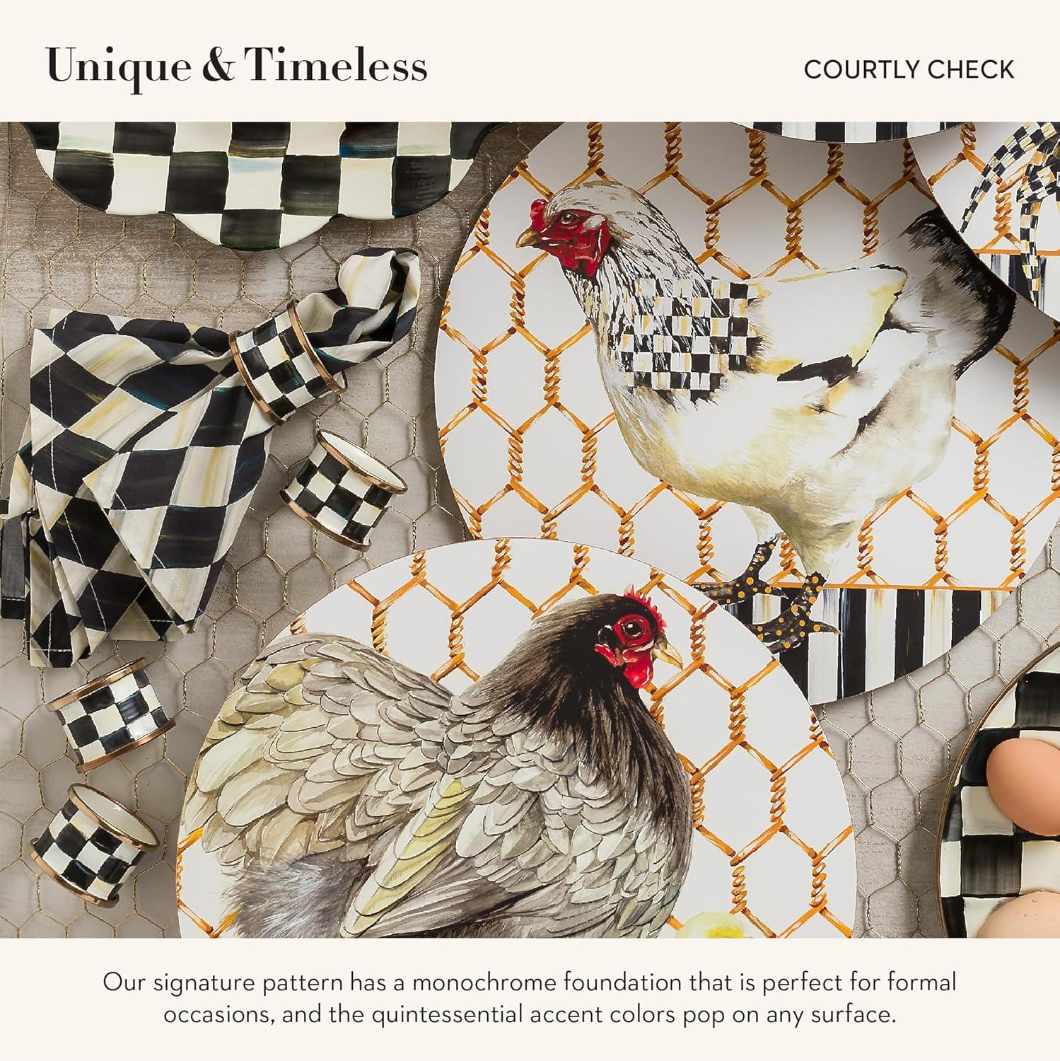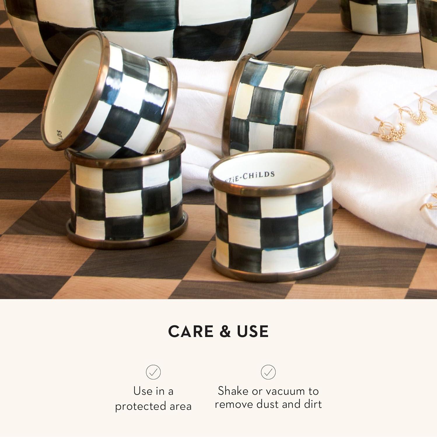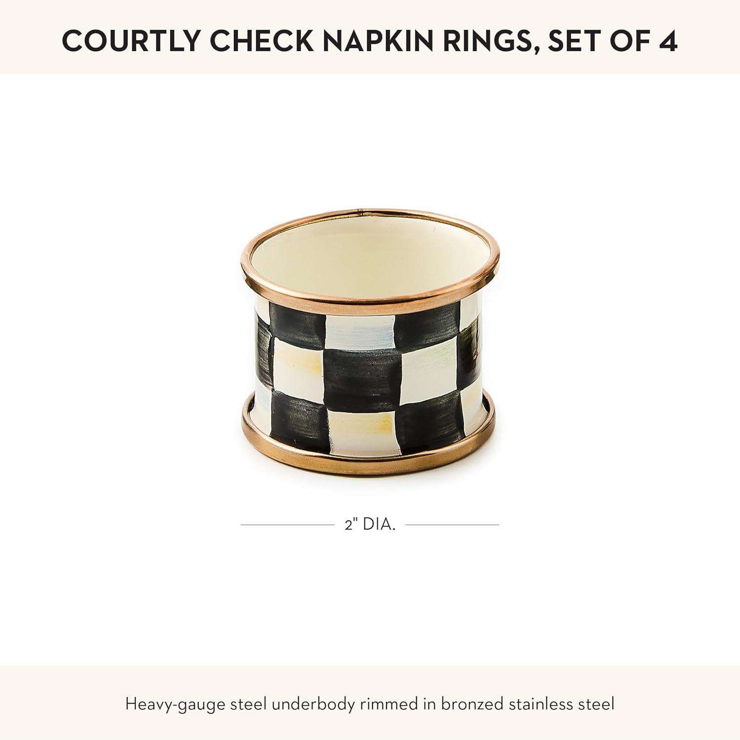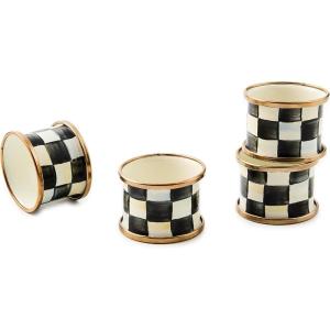 MACKENZIE-CHILDS Courtly Check Enamel Napkin-Ring Set, Black-and-White Napkin-Holder Ring for Cloth Napkins, Set of 4