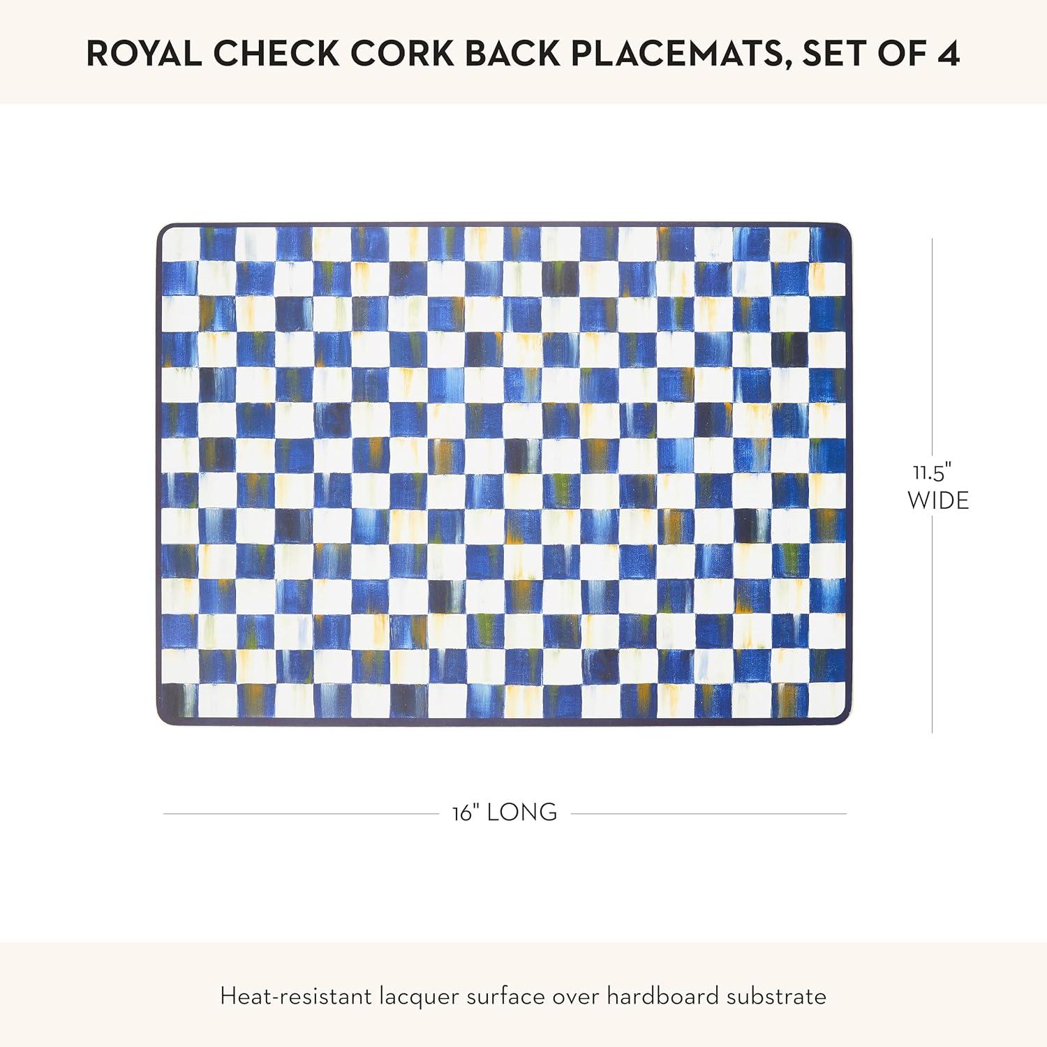 - Get the MACKENZIE-CHILDS Set of 4 Cork-Back Placemats, Hard-Finish Table Mats, Blue-and-White Royal Check(Sterling Check) you want at a price you can afford with our markdown sale.